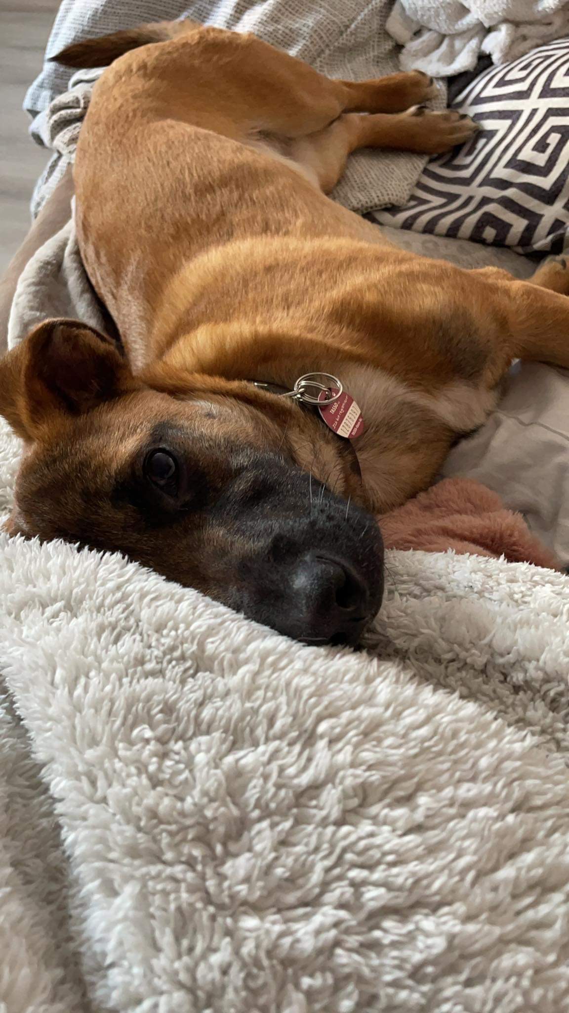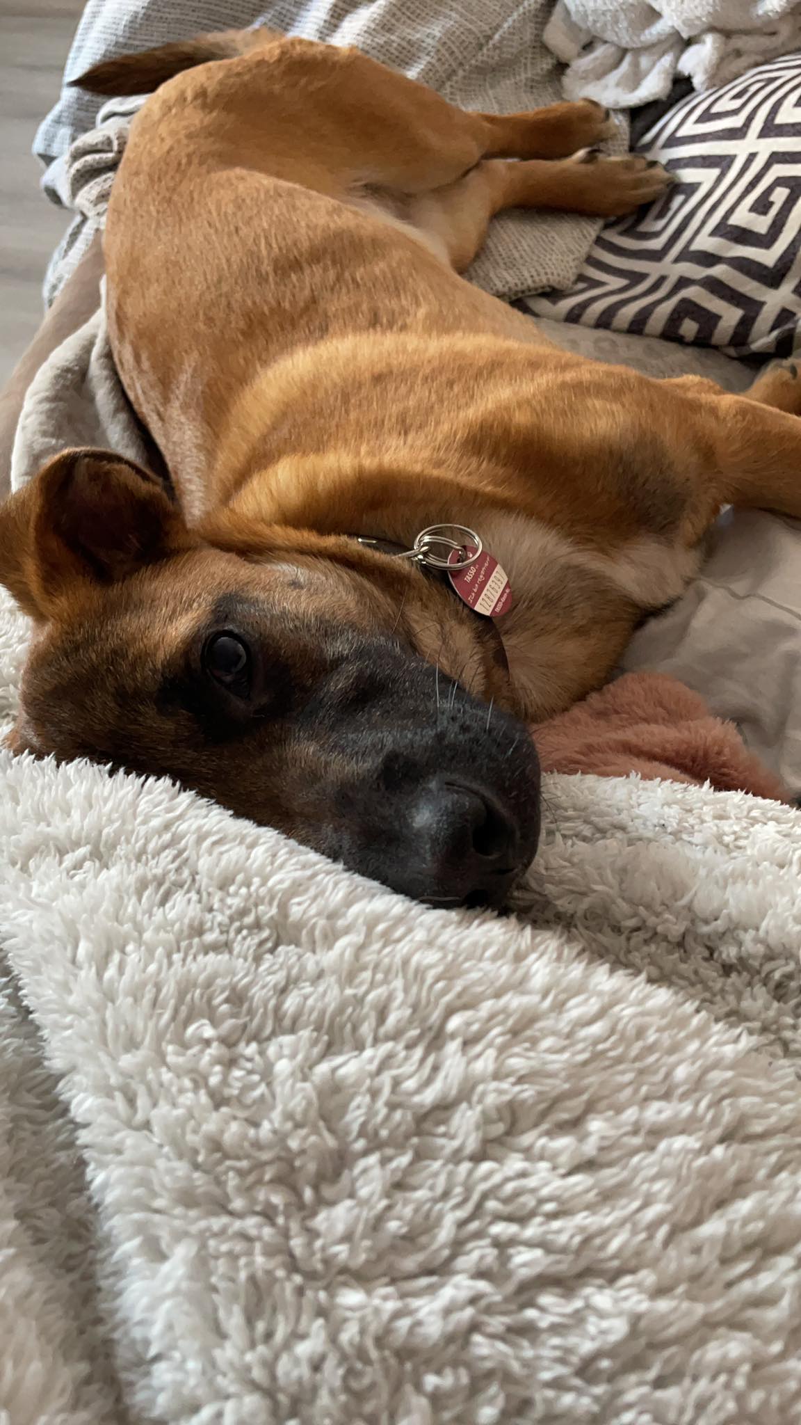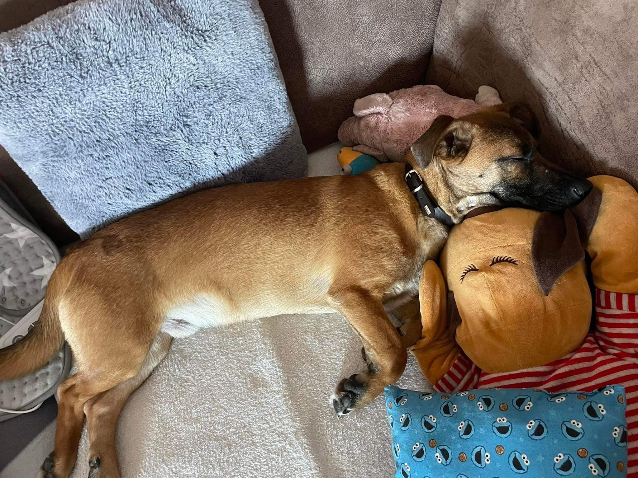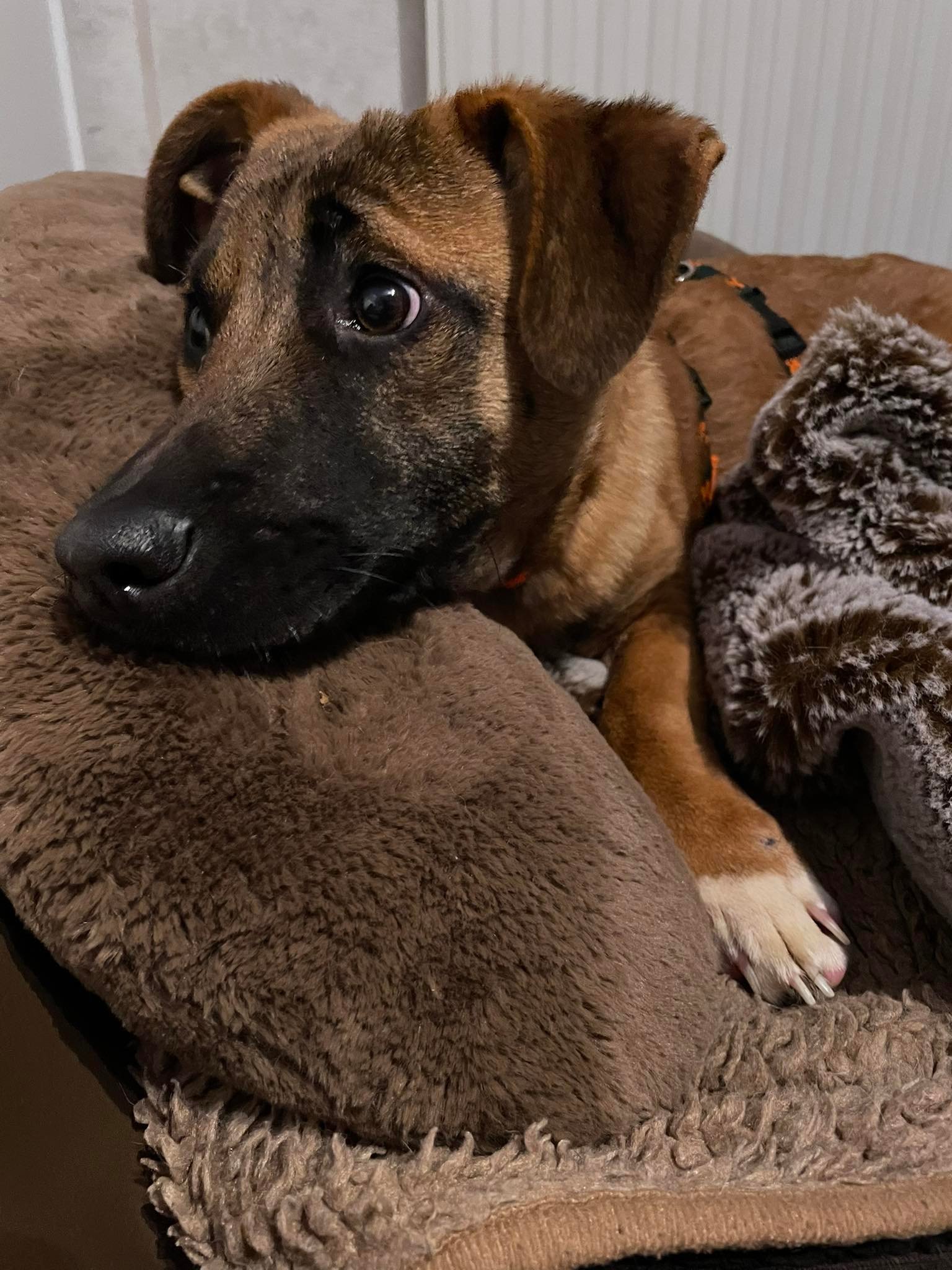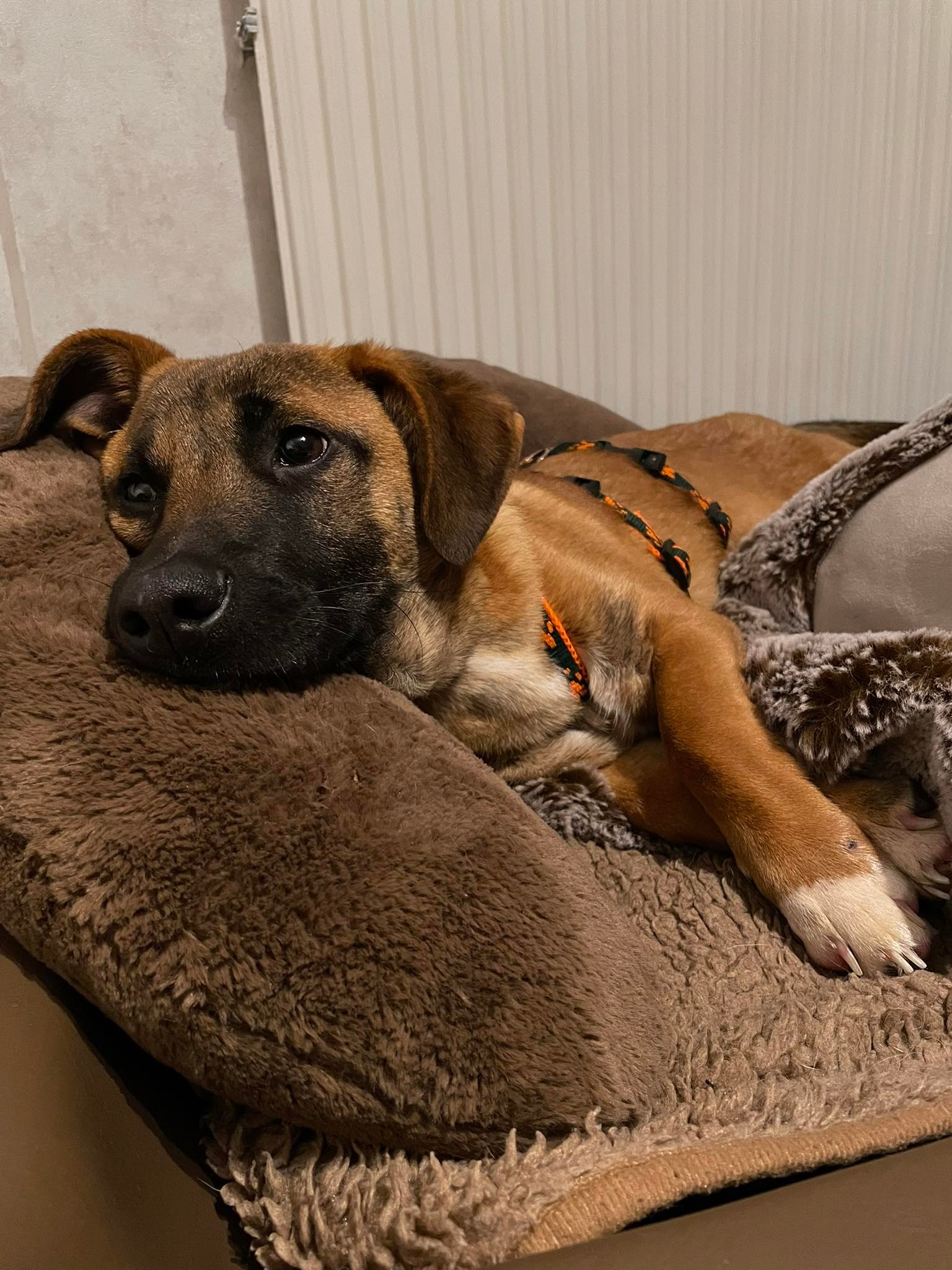 Er bleibt hier im Rudel bis zu 6 Stunden gut allein, das ist überhaupt kein Problem für ihn. Auch ist er komplett stubenrein.