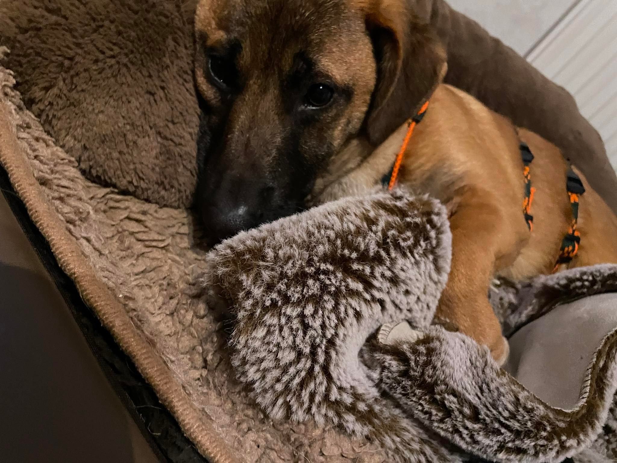 Hier auf seiner Pflegestelle leben noch Katzen und Kaninchen, hier zeigte er keinen Jagdtrieb.