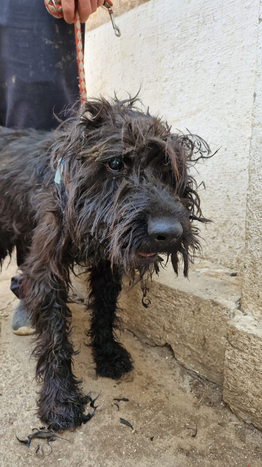 PIET ist sehr freundlich, hatte aber natürlich Schmerzen, sodass wir ihn nicht gestreichelt haben. Aber Irina hat ihn gestreichelt und problemlos die Wunde versorgt. Diese wird heilen und er könnte Ende April ausreisen.