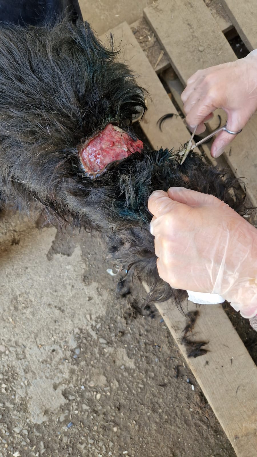 wahrschl. Schnauzer-Mix, Bisswunde am hinteren Hals (04/2022)