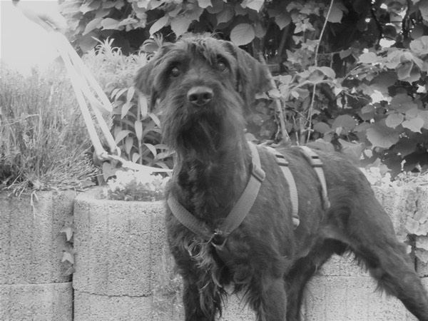 zur Besonderheit: | Schnauzer-Mix, mit hundeerfahrenen Katzen verträglich, wahrscheinlich blind |