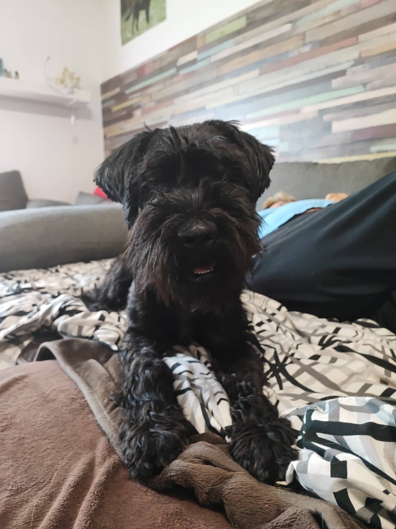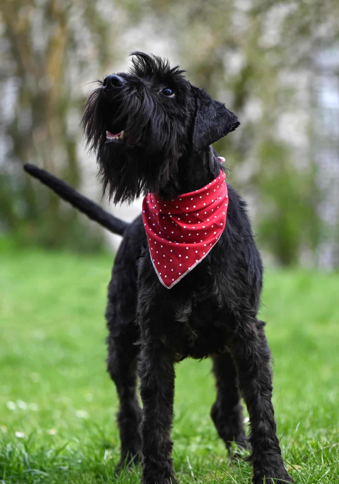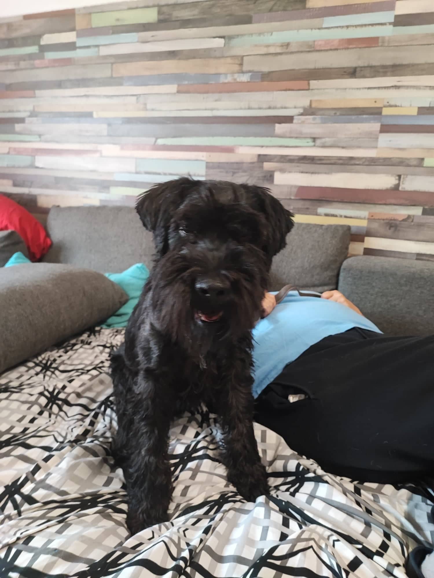 Bei anderen Hunden entscheidet die Sympathie und hier muss der Besitzer unter Umständen ganz klare Regeln setzen und die Begegnung führen –nach einer Gewöhnung (am besten mit Maulkorb) kann er aber durchaus auch mit Artgenossen klarkommen. Schnauzer halt 🙂