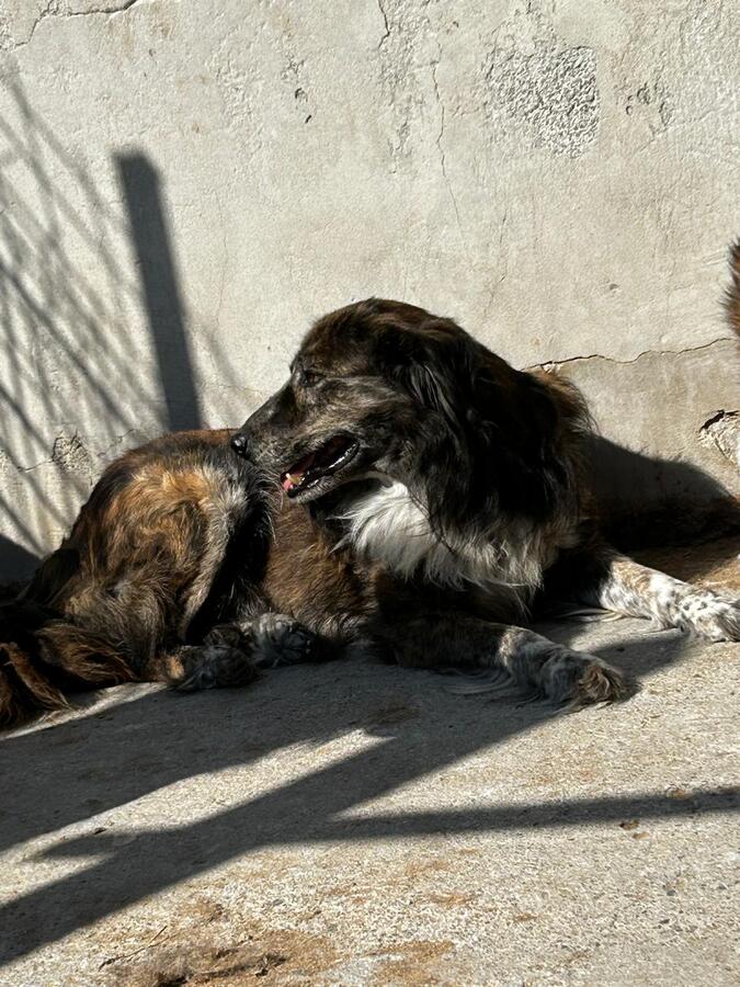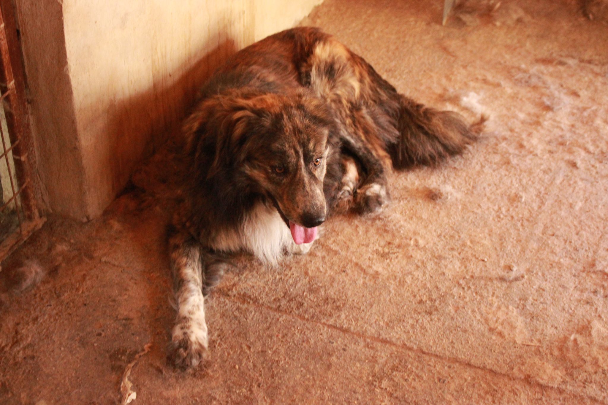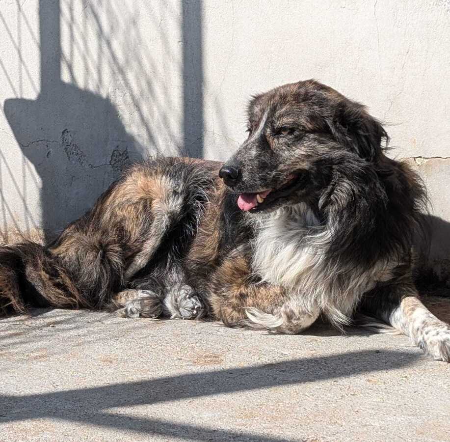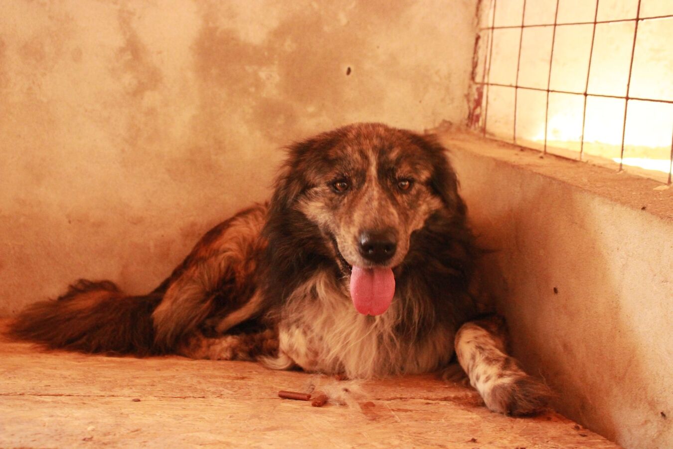 PILGRIM zeigte sich bei unserem Besuch freundlich, er blieb auf Abstand, beobachtete das Geschehen jedoch aufmerksam. Als wir uns ihm zuwandten und Leckerchen angeboten haben, blieb er erst ruhig liegen und reagierte nicht panisch. Gerne hätte er die Leckerchen genommen, aber dafür fehlt das Vertrauen an den Menschen.