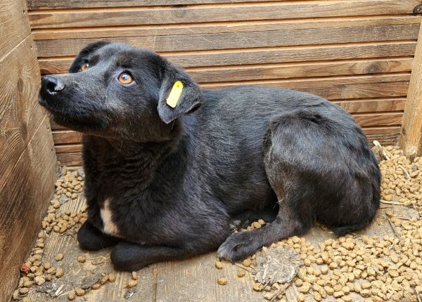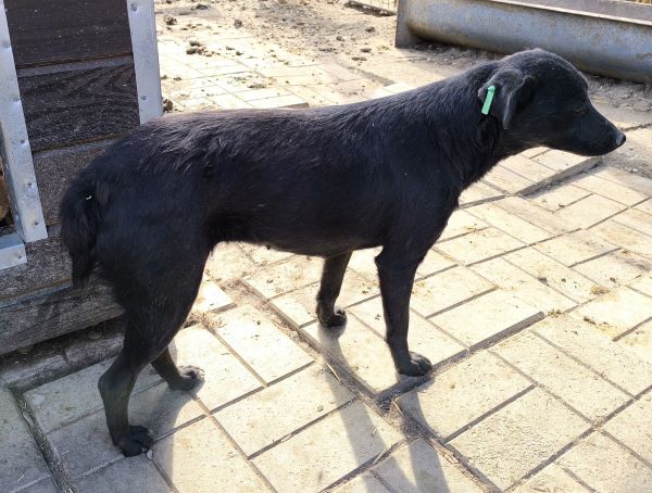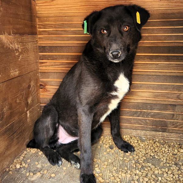 Diese Hündin zeigt sich bei unserem Besuch zunächst vorsichtig und zurückhaltend. Unsere angebotenen Leckerli hat sie nicht genommen, man merkte ihr die Neugier aber an. Unsere Annäherungsversuche verunsicherten sie, allerdings geriet sie dabei nicht in Panik. In der Hütte konnten wir sie dann vorsichtig streicheln. Sie unternahm dabei weder Fluchtversuche, noch zeigte sie Abschnappverhalten.