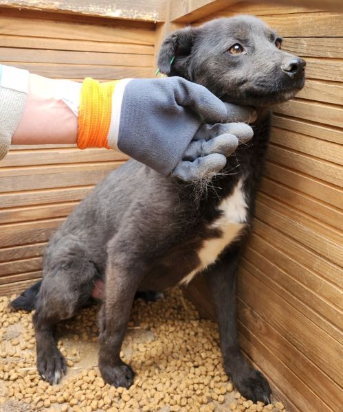 Die zarte Hündin ließ sich auch diesmal wieder vorsichtig von uns streicheln. Sie scheint die ungewohnte Berührung noch nicht so genau einordnen zu können, schien dies aber auch nicht unangenehm zu finden. Mit etwas Zeit und Geduld würde die Maus bestimmt eine tolle Begleiterin werden!