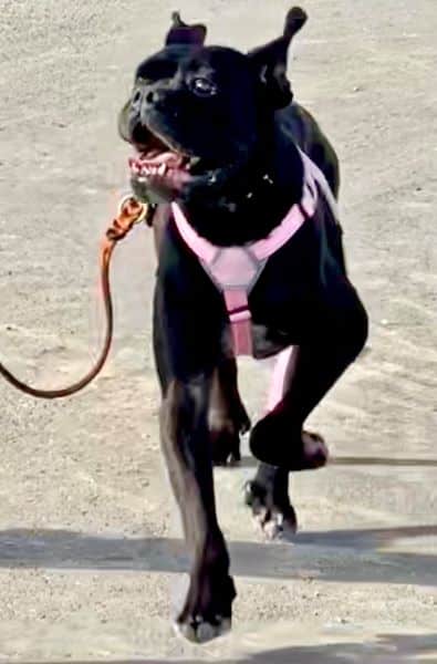 Pink geht super gerne kleine Runden spazieren, läuft klasse an der Leine und lässt sich sicher abrufen.