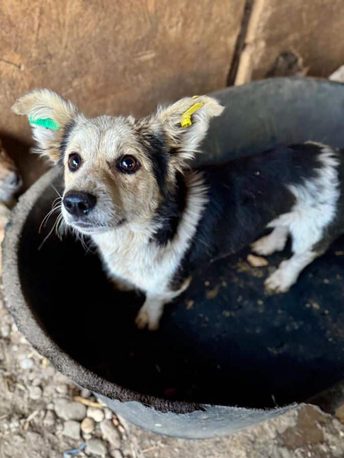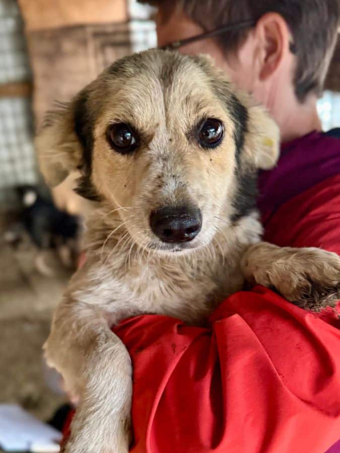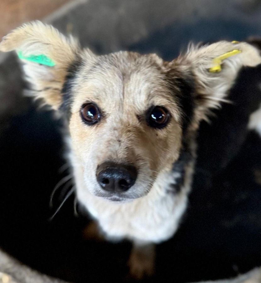 Die zauberhafte PIPPI ist die Kleinste in ihrem Kennel und sie läuft ständig Gefahr unter die Räder zu kommen. Sie hielt sich die ganz Zeit in unserer Nähe auf, ohne dabei aufdringlich zu sein. Sie wartete geduldig darauf, bis sie an der Reihe war. Mit ihren kleinen Kulleraugen berührte sie uns sofort.