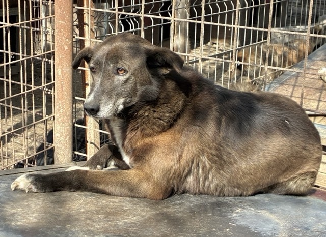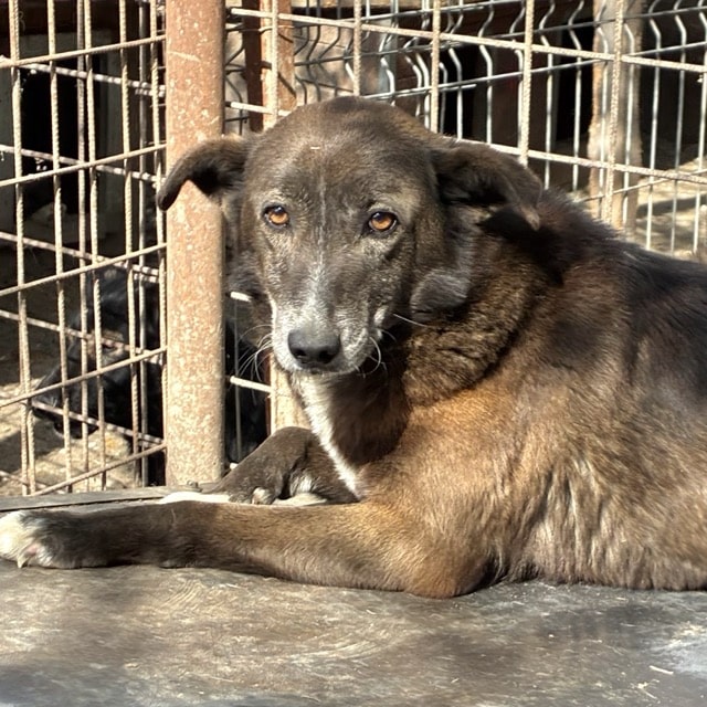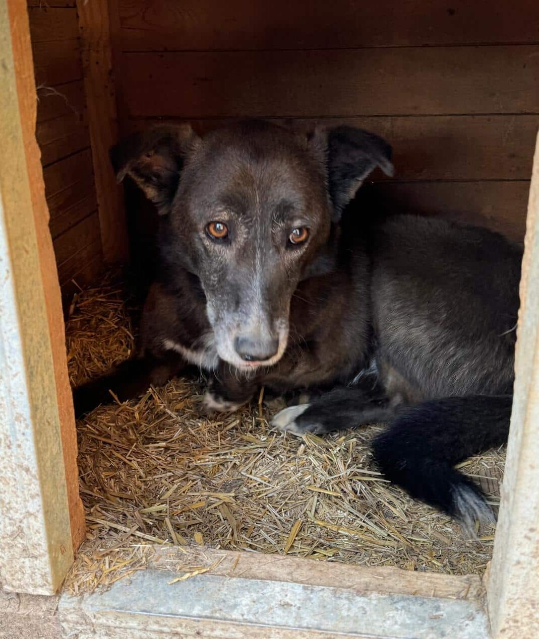 Seit nun mindestens 7 unvorstellbar langen Jahren hofft unser hübscher PIRNO mit den ausdrucksstarken, traurigen Augen im riesigen Shelter auf sein Glück. In all der Zeit hatte er kaum Kontakt zum Menschen, lediglich die Arbeiter kommen und gehen. Nie hatte er die Chance, Vertrauen zu lernen. Deshalb ist es auch nicht verwunderlich, dass er sich auch bei diesem Besuch unsicher zeigte. Als wir den Kennel betraten, lag PIRNO auf seiner sicheren Hütte. Er verließ diesen Platz nur ungern und huschte dann – nicht panisch – jedoch schutzsuchend durch den Kennel, um in die nächste Hütte zu flüchten. Ein trauriger Anblick, der auch im Nachhinein noch tief berührt. Wir wünschen PIRNO, dass er nach all den verlorenen Jahren doch noch gesehen wird und endlich erfahren darf, was Geborgenheit ist. Wir suchen einen sehr erfahrenen Platz, wo er Stück für Stück an ein Zusammenleben auf der Sonnenseite herangeführt wird und einen würdigen Lebensabend verbringen darf. Ohne Ansprüche, aber vor allem endlich ohne Sorgen. Mindestens ein netter Ersthund, an dem der verträgliche PIRNO sich orientieren kann, wäre ein Muss. Wir wünschen ihm dieses Wunder sehr.