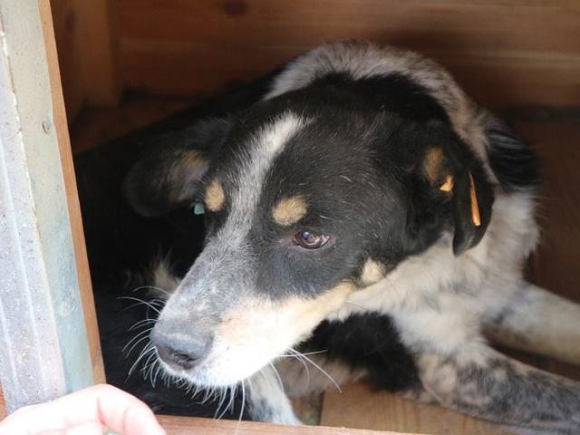 PITTI lag zitternd in der Hütte, als wir im Zwinger waren. Als wir uns mit ihm beschäftigt haben, wurde PITTI neugierig und nahm sogar Leckerchen aus der Hand. Anfassen lassen wollte er sich noch nicht. Wir denken, dass ihm der Stress im Zwinger einfach zu viel ist.