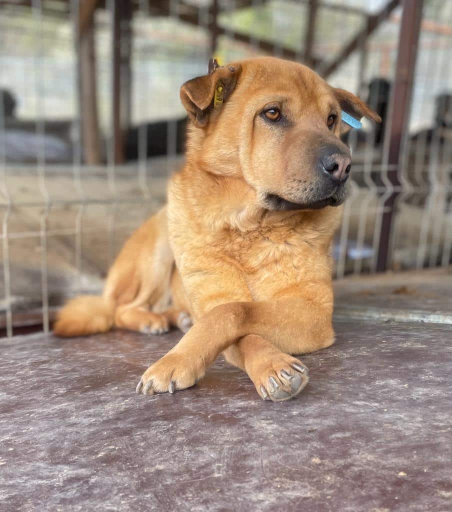 PIUS ist ruhiger geworden. Er lag nur noch auf dem Hüttendach und hat da seine Ruhe vor den ganzen Junghunden im Kennel gesucht. Er ließ sich dort weiterhin gut anfassen und nahm Leckerchen.
