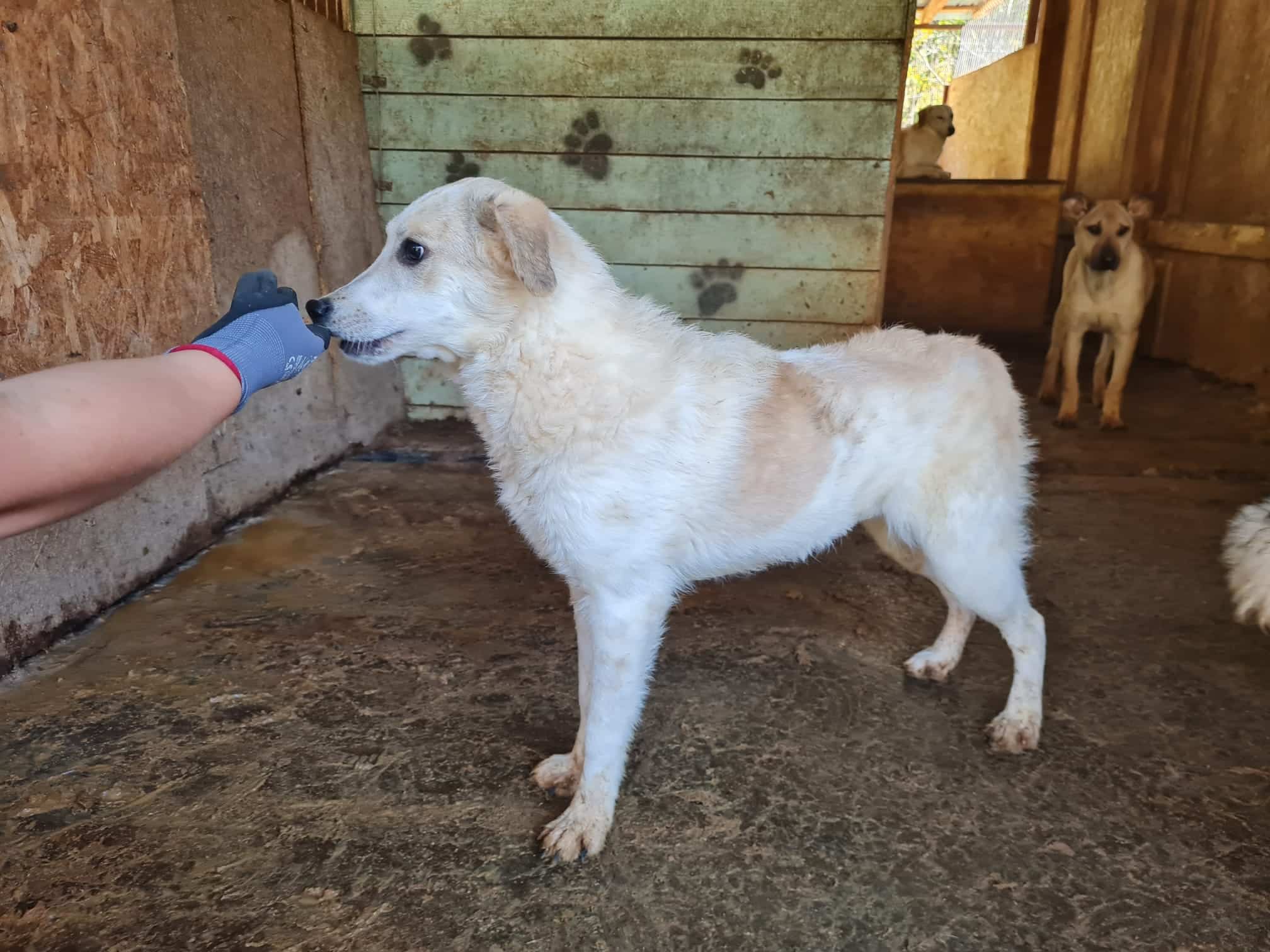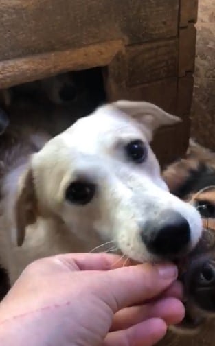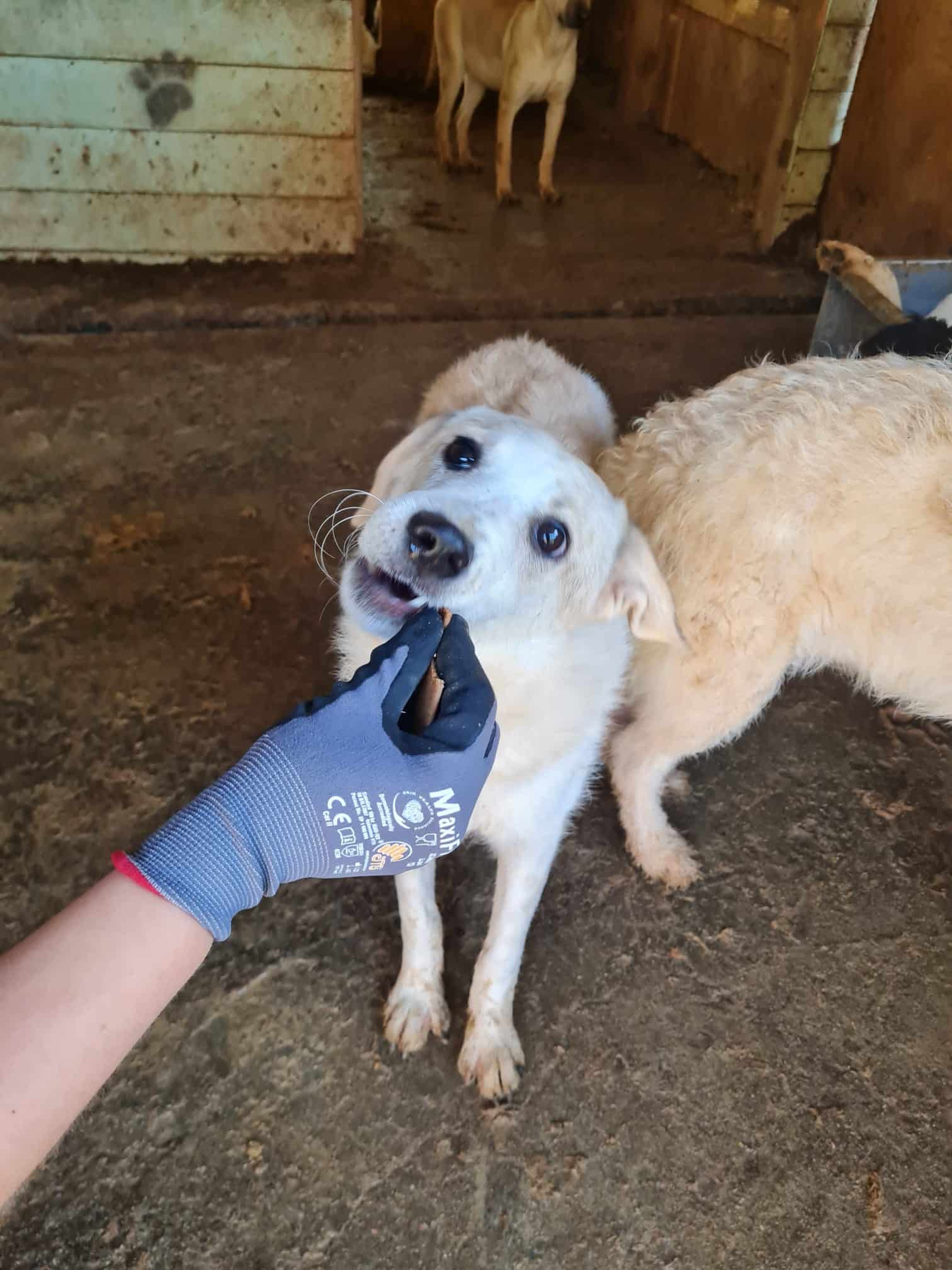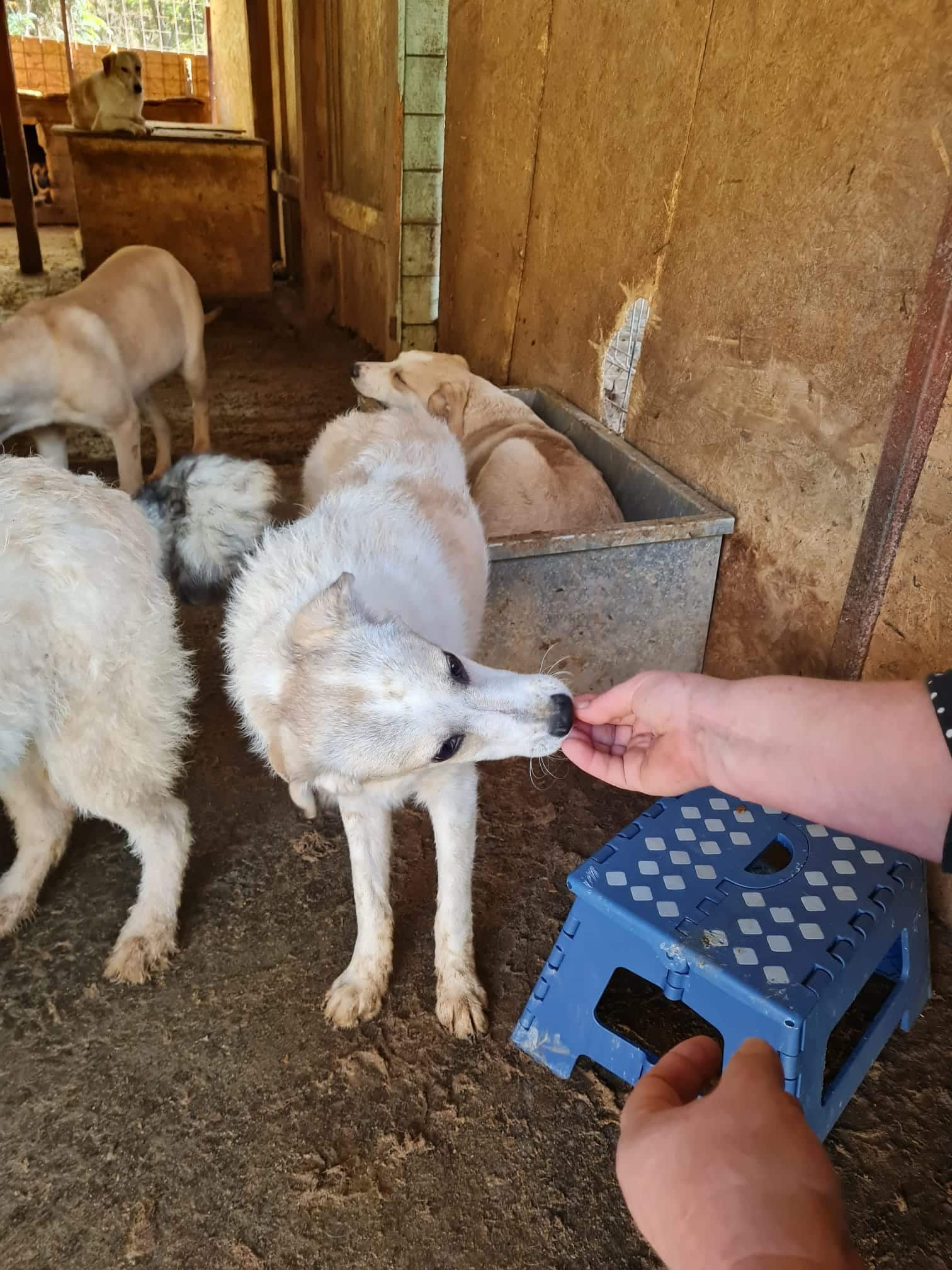 Pixi ist noch neugierig und kam sofort raus, um unsere Leckerchen zu nehmen. Mit etwas Geduld und im Idealfall mit einem souveränen Zweithund kann man sie zeitnah zutraulicher bekommen. Sie ist sehr verträglich. Hoffentlich findet sie liebe Menschen, die ihr den Weg als Familienhund zeigen.
