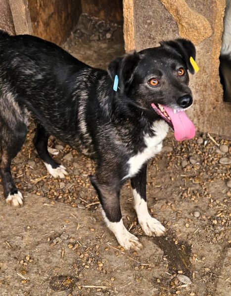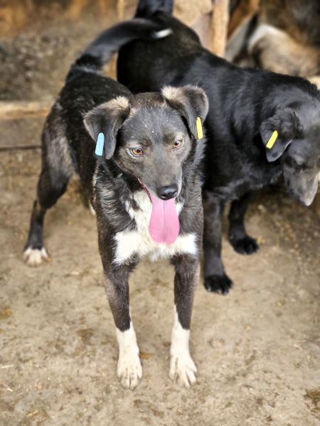 POLLUX freute sich riesig über unseren Besuch. Zusammen mit den anderen Hunden hüpfte er minutenlang freudig durch den Kennel. Gerne nahm er unsere Leckerchen und wir konnten ihn dabei auch an der Schnauze berühren. POLLUX ist im direkten Kontakt mit Menschen etwas unsicher. Richtige Streicheleinheiten scheint er noch nicht zu kennen. In einer anderen Umgebung sollte dieser letzte Schritt des fehlenden Vertrauens aber schnell überwunden werden. POLLUX ist ein rundum lustiges Kerlchen.
