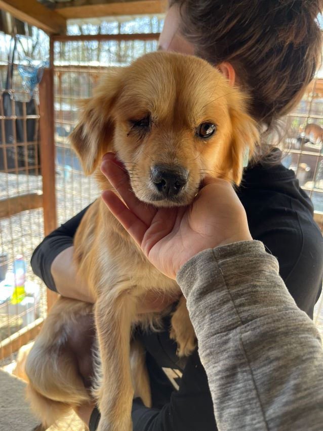Unaufdringlich suchte sie unsere Nähe, ließ sich problemlos auf dem Arm halten und genoss diese Streicheleinheiten sichtlich. Was die kleine POLLY in ihrem jungen Leben bereits durchmachen musste, kann man nur erahnen: sie hattte wohl schon mehrmals Welpen, ihr rechtes Auge ist defekt, sie schont ihr rechtes Vorderbein und ist zu dünn. Für dieses zarte Seelchen ist der große Shelter absolut der falsche Ort. Wir suchen dringend einen liebevollen Platz, damit POLLY ankommen und heilen darf – und nie wieder leiden muss.