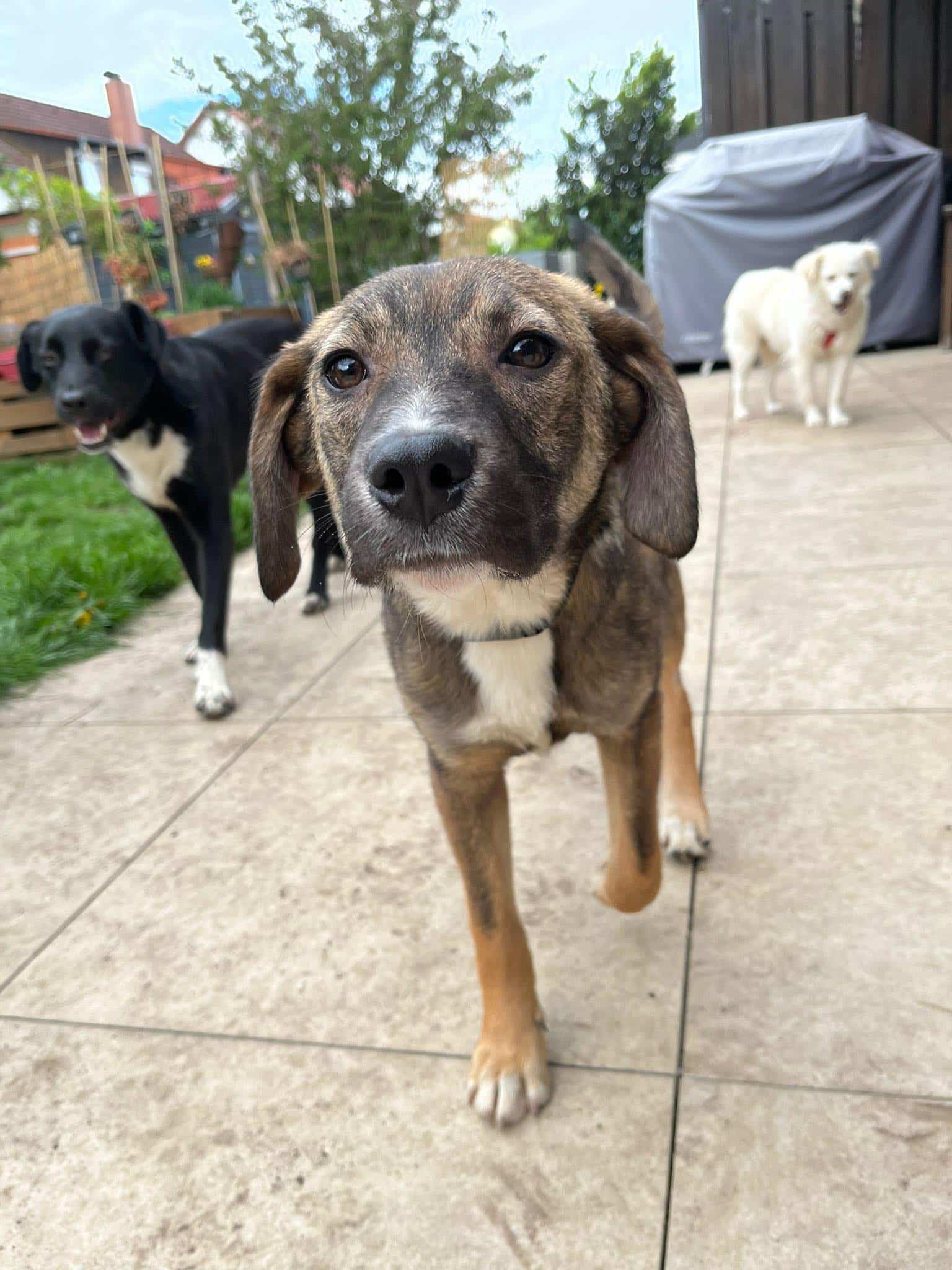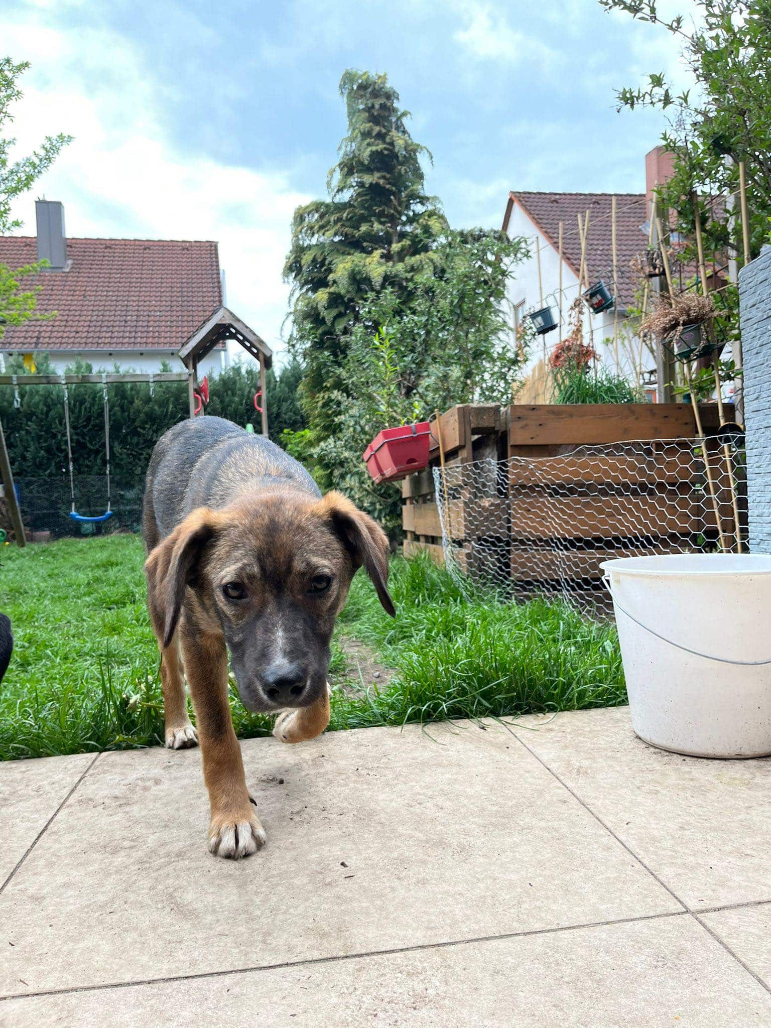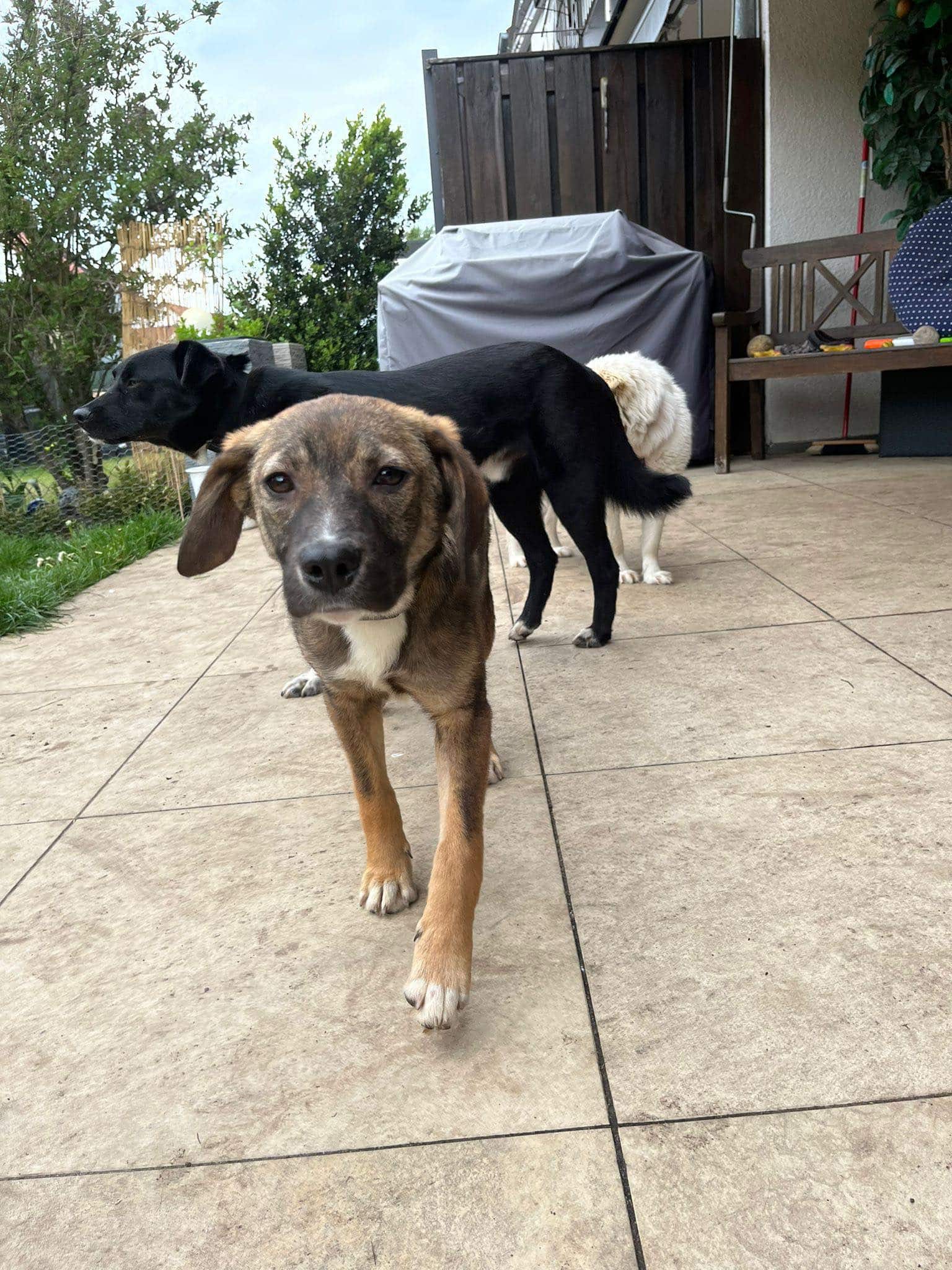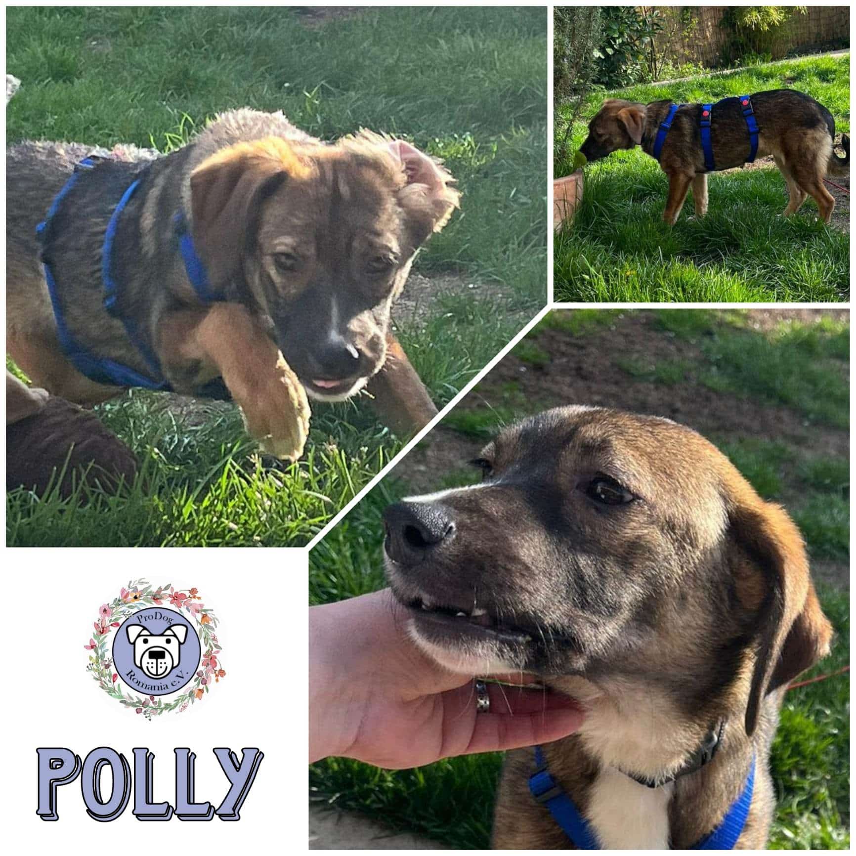 Polly die kleine Schmusemaus ist seit Ende April bei ihre Pflegestelle in 92318 Neumarkt und ist ein Hund von ProDogRomania. – weiblich – ca 6 Monate – aktuell ca 45 cm – geschätzte Endgröße ca 50/55 cm – gechipt – geimpft – nicht kastriert – im Besitz eines EU Heimtierausweises Polly ist eine ganz liebe, welpentypisch verspielte Maus. Sie ist sehr neugierig aber auch in manchen Dingen noch etwas vorsichtig. Streicheleinheiten findet sie super und genießt es in vollen Zügen. Zu Kindern ist sie freundlich aber hält anfangs noch Distanz. Leckerli findet sie richtig toll und lässt sich dadurch gut motivieren. Polly läuft schon gut an der Leine , ist Stubenrein und hält auch nachts lange durch. Alleine bleiben kann sie auch schon eine Weile. Mit Artgenossen kommt sie gut zurecht, sie lebt in ihrer Pflegestelle mit mehreren Hunden zusammen. Im Garten ist sie sehr gern und tobt auch mal wie es sich für Welpen gehört. Polly muss noch ganz viel lernen, denn sie ist bis jetzt in Rumänien aufgewachsen, daher wäre es wichtig mit ihr in eine Hundeschule zu gehen.