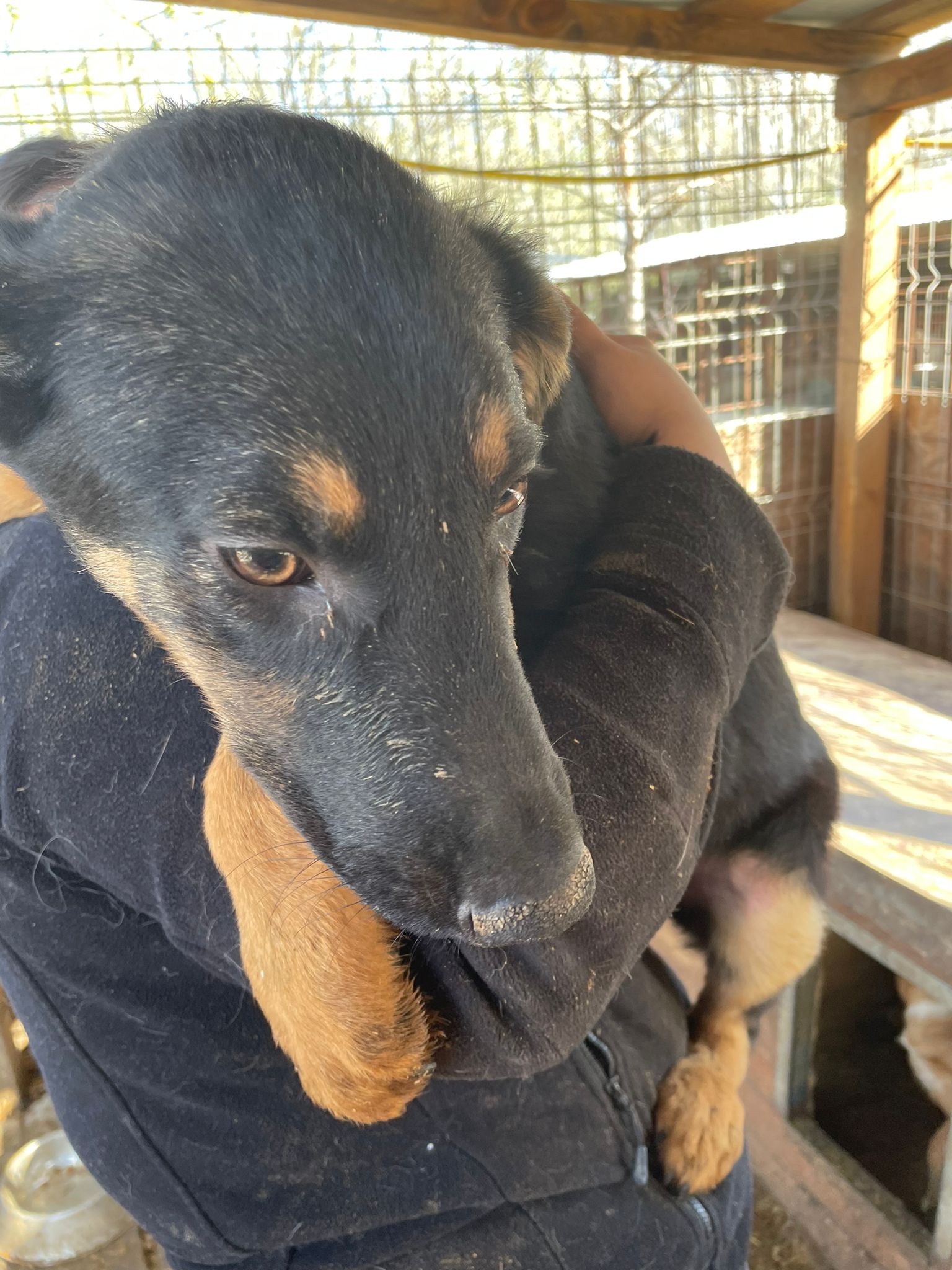 POPPY ist noch so jung, aber auch schon so unglücklich. Völlig geknickt liegt er in der Hütte oder davor. Die anderen Hunde steigen über ihn drüber oder kuscheln sich an ihn, er lässt alles über sich ergehen, ohne eine Miene zu verziehen. POPPY ist eher ruhig und überhaupt nicht aufdringlich, mag uns Menschen und fand die Streicheleinheiten und etwas Aufmerksamkeit toll.