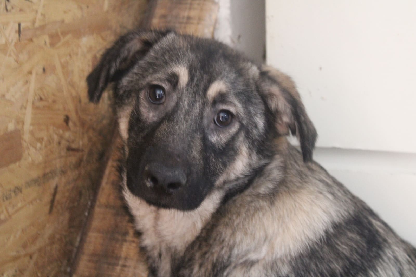 junge Hündin, die vom lauten Shelterleben noch stark beeindruckt ist