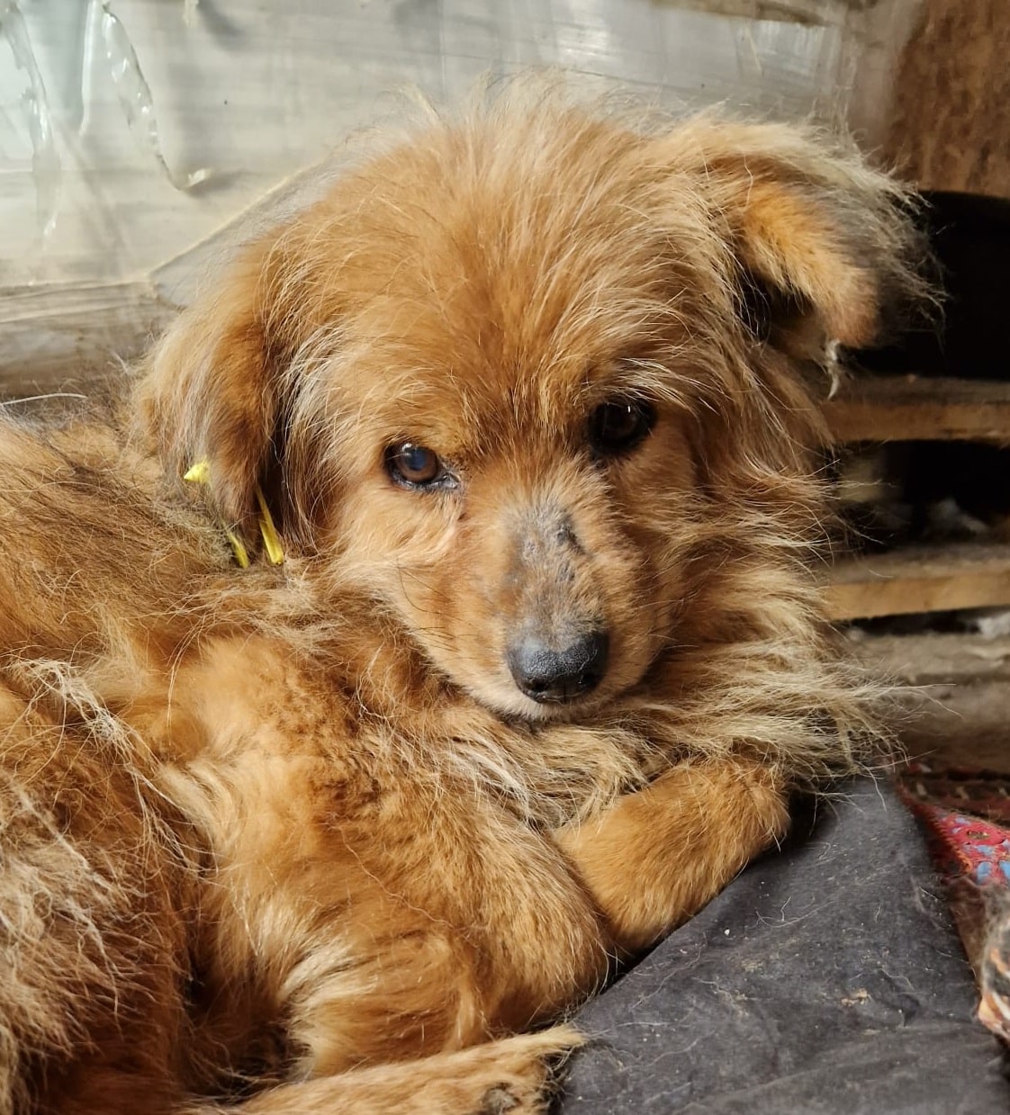 kleiner zurückhaltender Rüde, den wir eingerollt auf dem Boden liegend in der Krankenstation gefunden haben