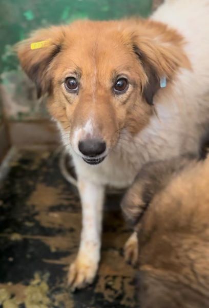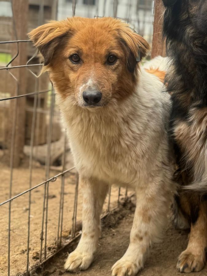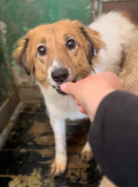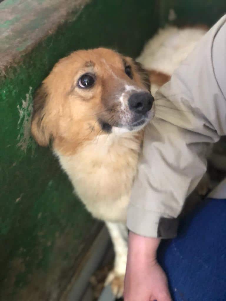 PRYA ist nun in einen Außenkennel umgezogen. Sie lebt dort mit drei Rüden zusammen und zeigt sich verträglich. Ihre Unsicherheit uns gegenüber ist weiterhin spürbar, aber Leckerlies nimmt sie weiterhin neugierig vom Boden auf. Bedrängen wollten wir sie nicht weiter, sie wich uns dann hinter die Hütte aus.