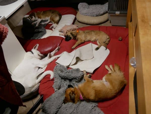Dafür gibt es ein großes gemeinsames Kronenkissen – und auch Pucky hat die Vorzüge davon schnell begriffen und ist eine der ersten, wenn es morgens oder abends zum gemeinsamen Kuscheln geht. Eng ans Pflegefrauchen geschmiegt, genießt sie die Nähe, die Wärme, die Ruhe.