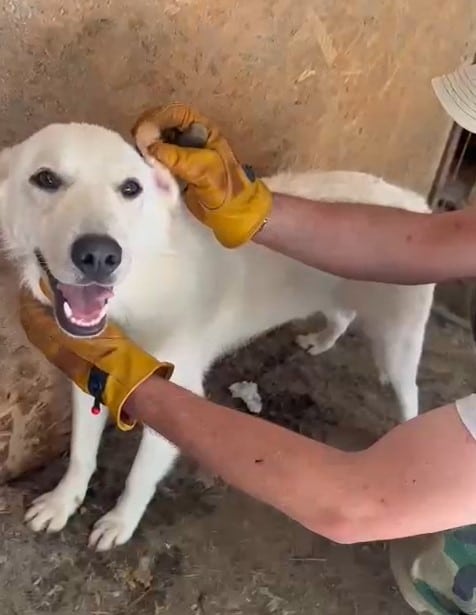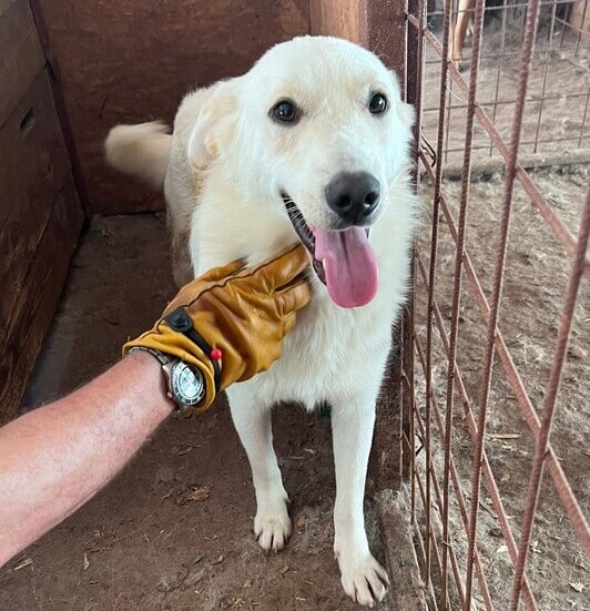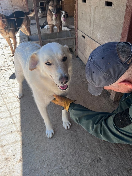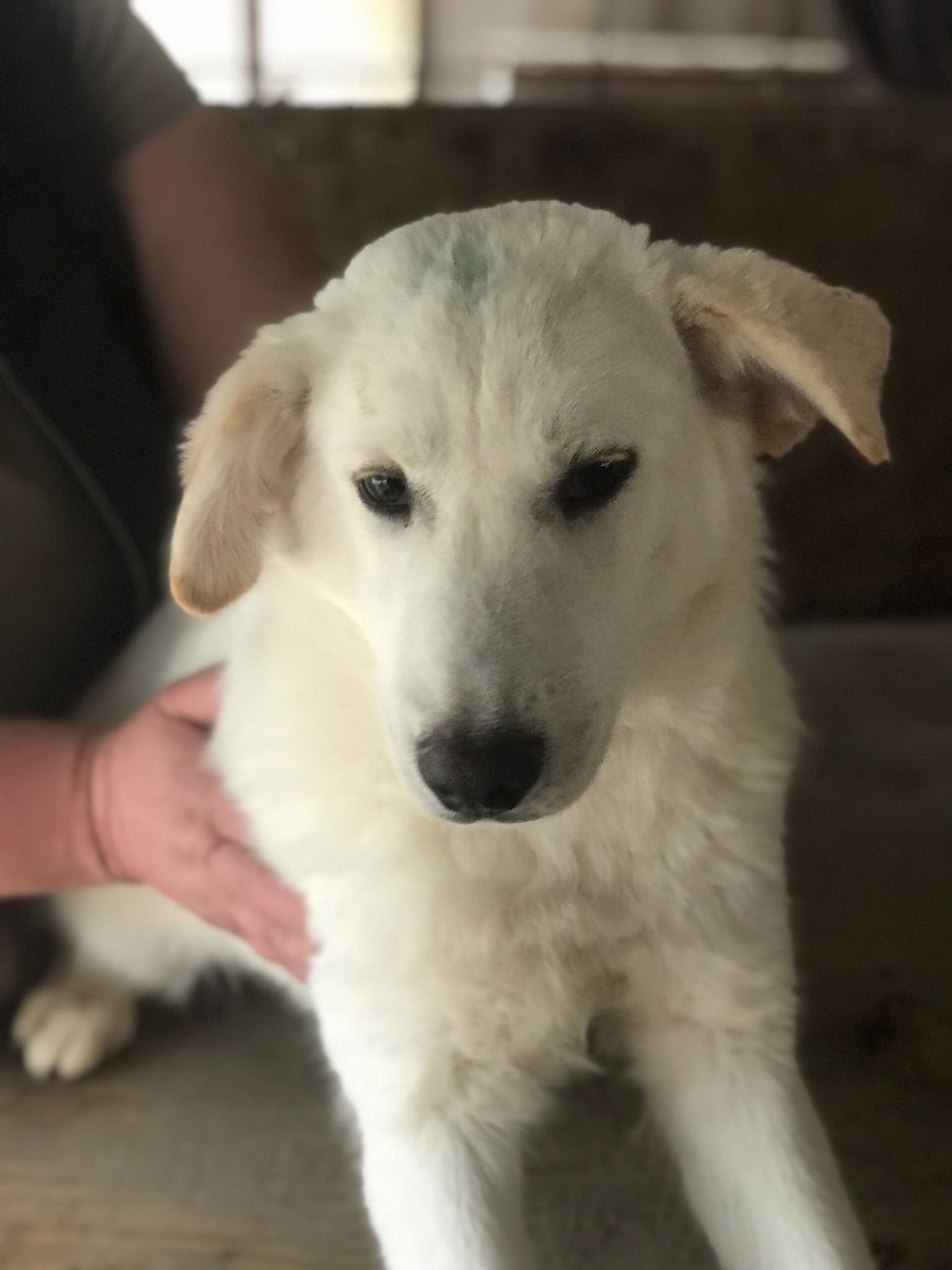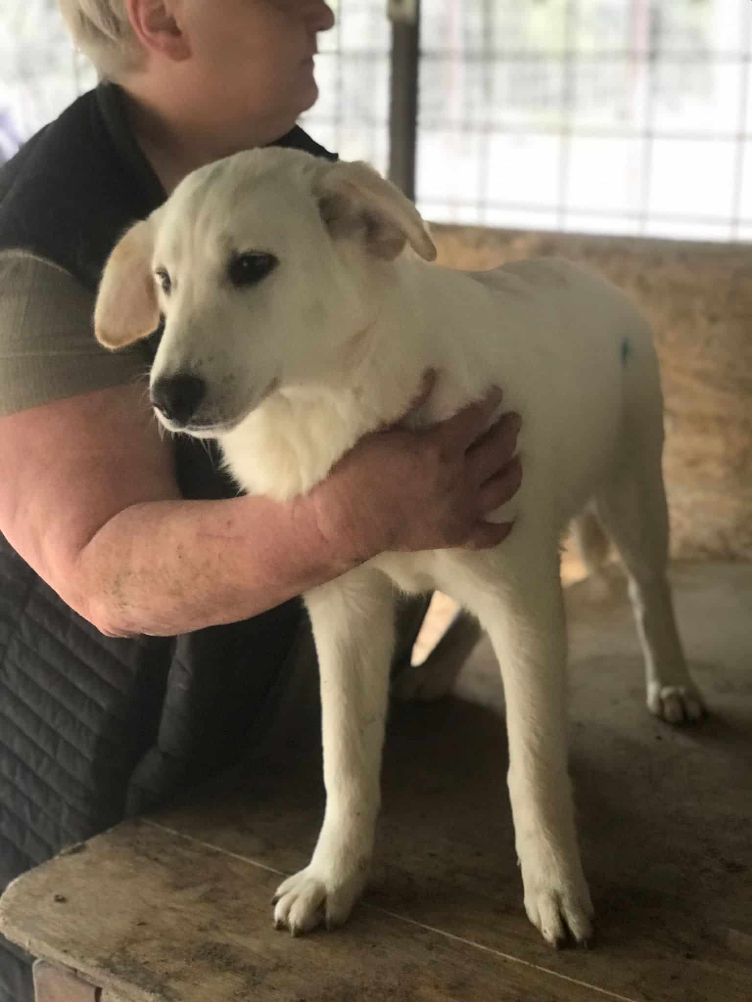 Update 07/23: Der wunderschöne, schneeweiße Hundebub hat dieses Leben einfach nur satt, es stresst ihn und er braucht etwas Zeit, um zu verstehen, dass es auch so was wie Ruhe und Liebe gibt. Das Spielen mit den Geschwistern lenkt ihn ab und da zeigt sich Pufos auch welpentypisch neugierig. Gern lässt sich der freundliche Pufos überall anfassen und vertraut den Menschen. Für ihn wäre es sehr dringend, dass er schnell gesehen wird.