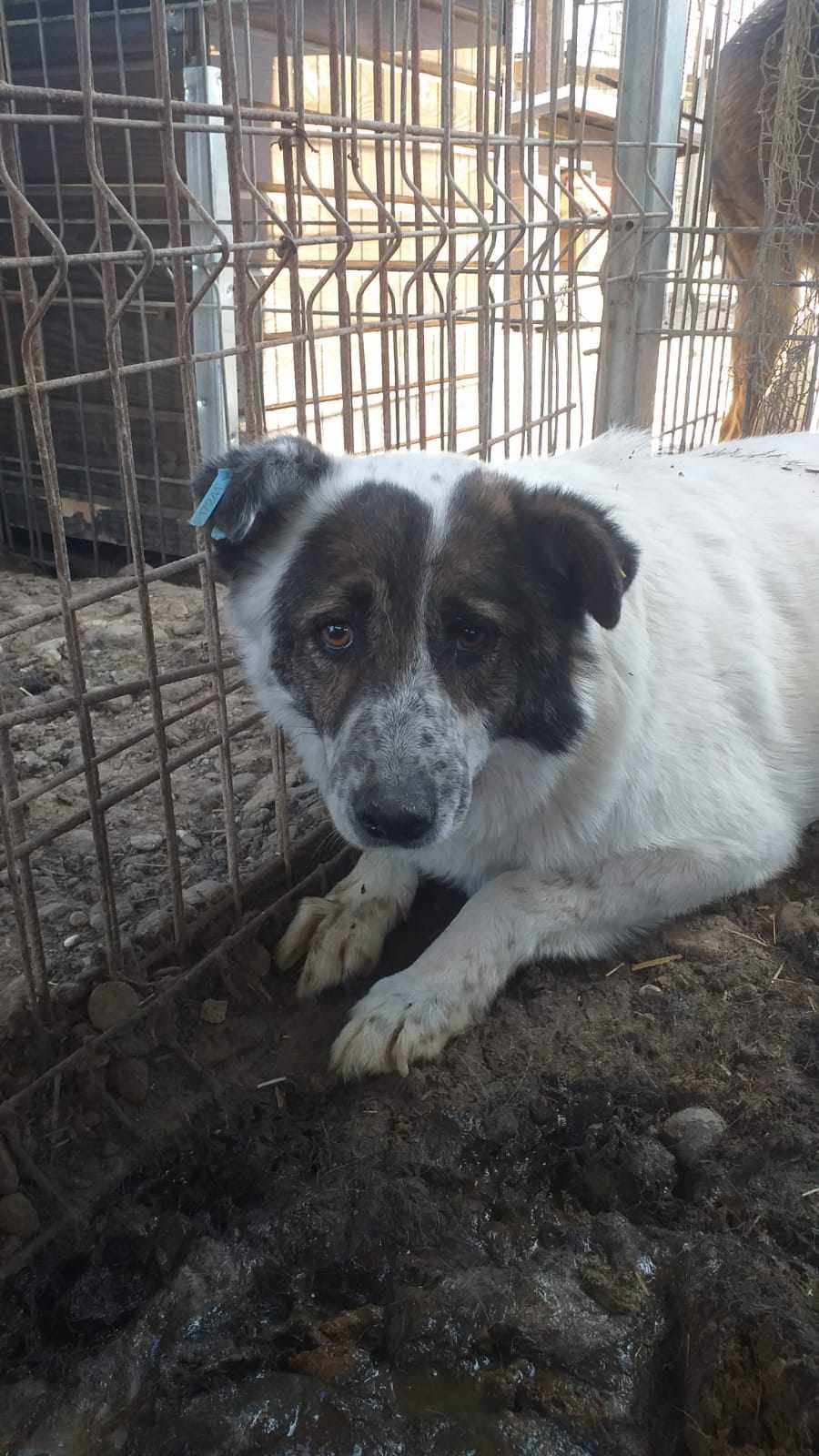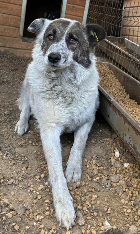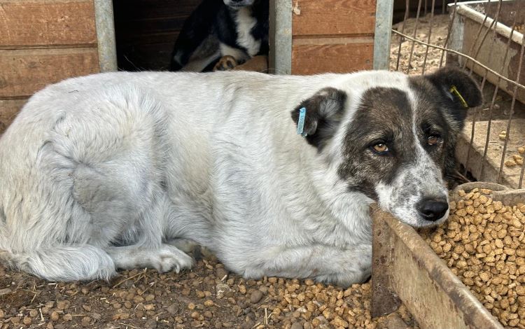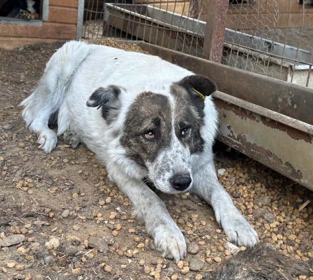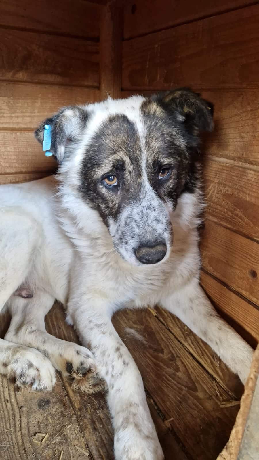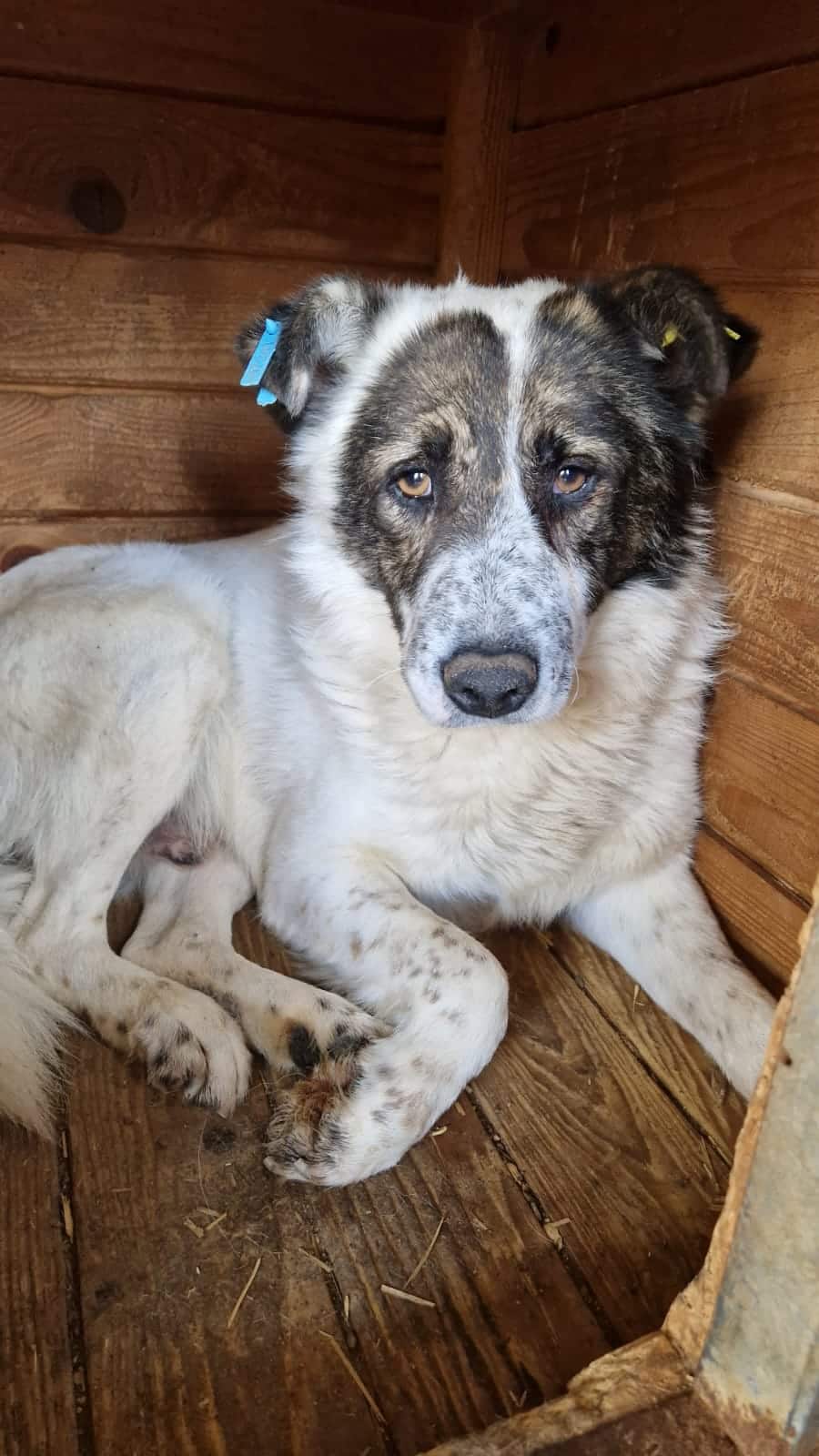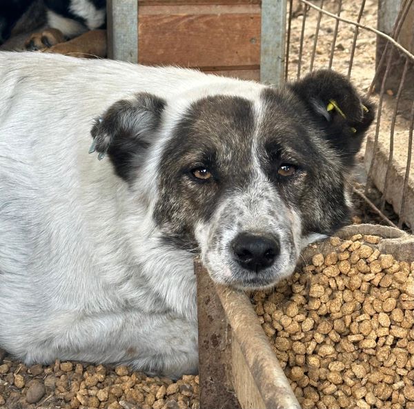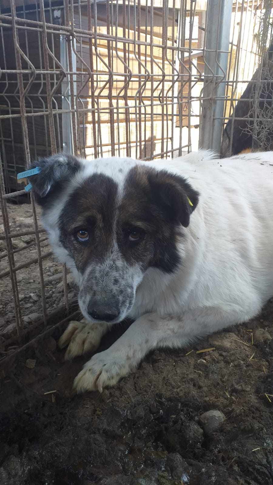 PUNTO lag bei unserem Besuch anfangs auf der Hütte und beobachtet unser Treiben, nach einiger Zeit legte er sich nach unten mit seinem Köpfchen auf dem Futtertrog, ganz in unsere Nähe, ab. PUNTO wirkt recht müde und trostlos, was man ihm nicht verdenken kann, denn sein Alltag besteht aus Lärm, Langeweile und Schmutz. PUNTO ist mit 4 Jahren noch jung und liess sich in der Hütte problemlos streicheln. Bei täglichen Kontakt zu Menschen würde der hübsche Kerl sicherlich bald aufblühen und das Leben genießen können.