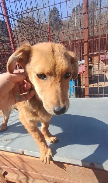 (rot-braun, Rücken dunkler, um die Schnauze ein bisschen weiß und auch schwarz)
