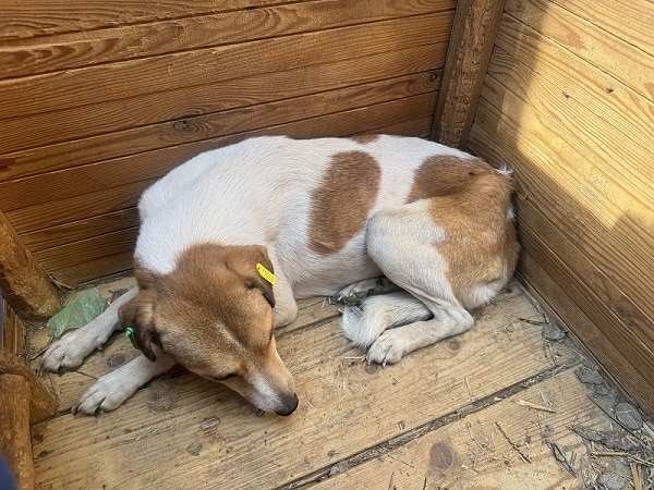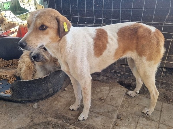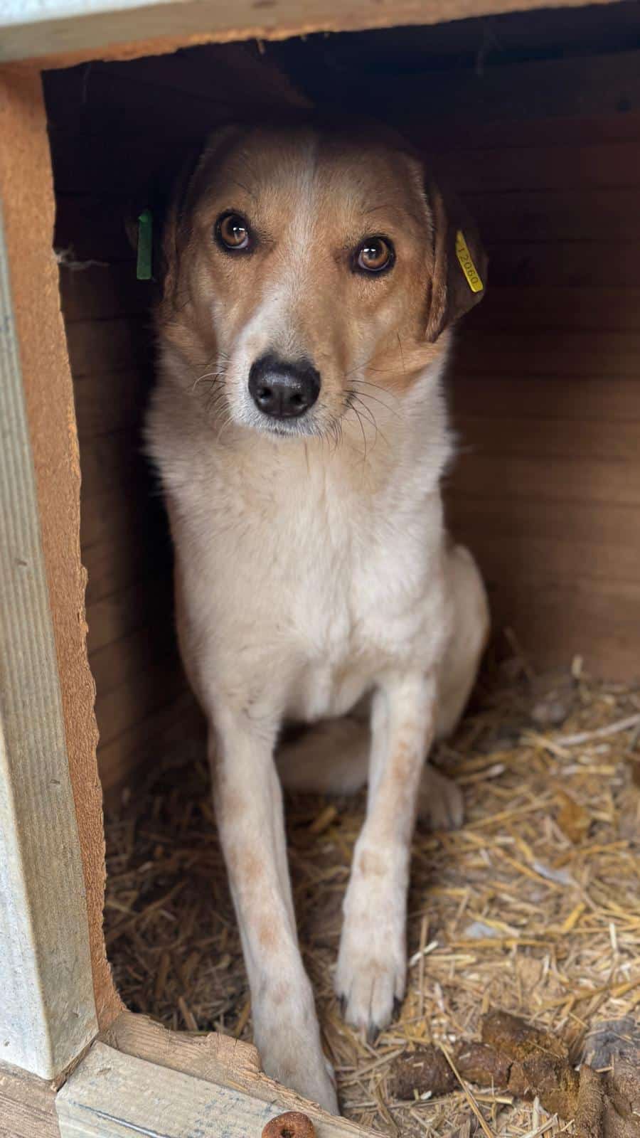 Ragna hat etwas zugelegt und ist aktuell nicht mehr zu dünn. Sie zeigte sich unsicher und ist bei Annäherungsversuchen vor uns geflüchtet. Unsere Leckerlies hat sie vom Boden genommen. Als wir versucht haben, sie zu berühren, ist Ragna zurückgezuckt. Wir konnten sie daher diesmal nicht anfassen.