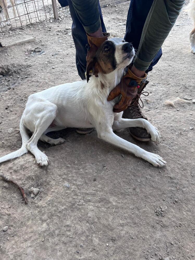 RAHILA zeigte sich sehr nett, überall gut anfassbar und verschmust. Sie war froh, als wir ihr unsere Aufmerksamkeit, leider nur für wenige Augenblicke, ihr schenkten. Leider ist die menschenbezogene Hündin viel zu dünn. Beim Streicheln haben sich die Rippen deutlich sichtbar abgebildet.