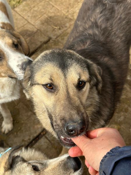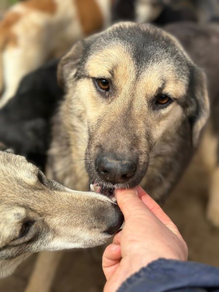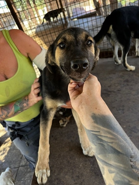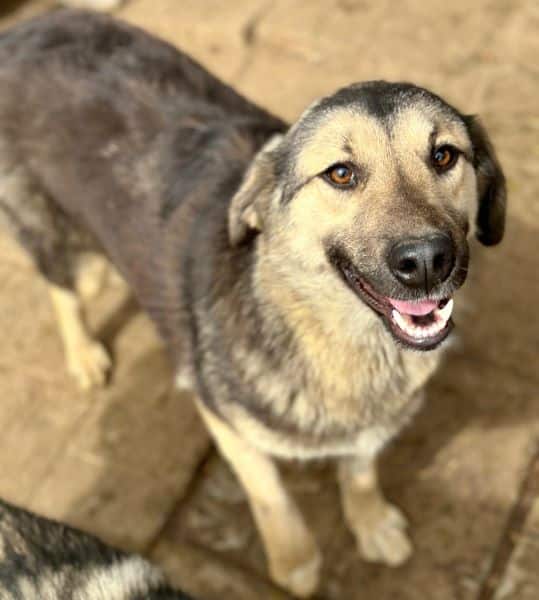Rainbow hat sich zu einer neugierigen, offenen und sehr verträglichen Hundedame entwickelt. Sie ist selbstständig zu uns gekommen, um sich Leckerchen abzuholen. Menschen mit Hundeerfahrung – im Idealfall mit Auslandshunden – würden sie in wenigen Tagen für sich gewinnen können.