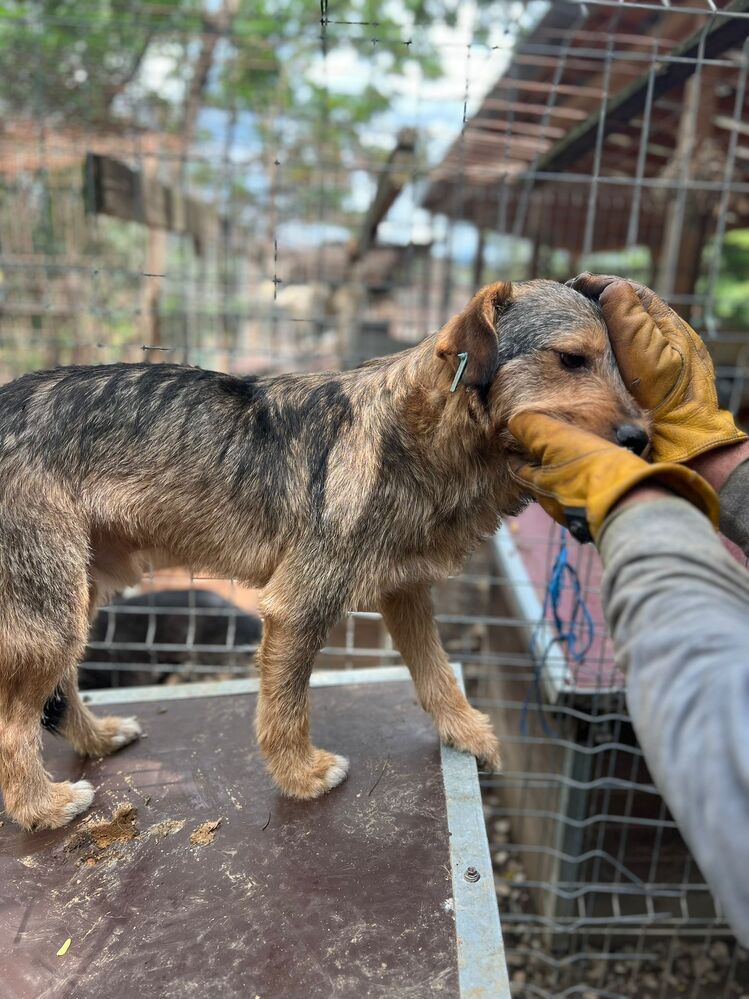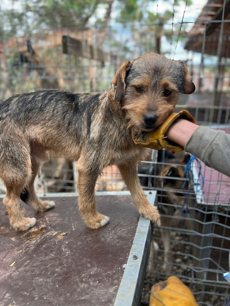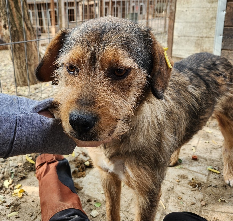 Der bezaubernde Hundebub hat uns mit seiner sanften, zarten Art stark beeindruckt. Ganz ruhig saß er im hinteren Bereich des Kennels und hielt nach uns Ausschau. Vorsichtig kraulten wir sein Fell und verwöhnten ihn mit Streicheleinheiten, eine seltene Aufmerksamkeit, die er genüsslich aufsog. Als wir damit aufhörten, stupste er uns immer wieder ganz vorsichtig an, um weitere Zuwendung einzufordern. An Leckerchen hatte er keinerlei Interesse, viel wichtiger war ihm die seltene Kuscheleinheit. Ein absolut bezaubernder Junghund, der trotz seines jungen Alters schon eine bewundernswerte Reife und Ausgeglichenheit ausstrahlt, die im hektischen Shelteralltag nicht oft zu finden ist. In unseren Augen ein absoluter Rohdiamant!