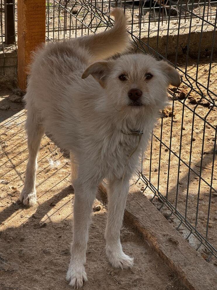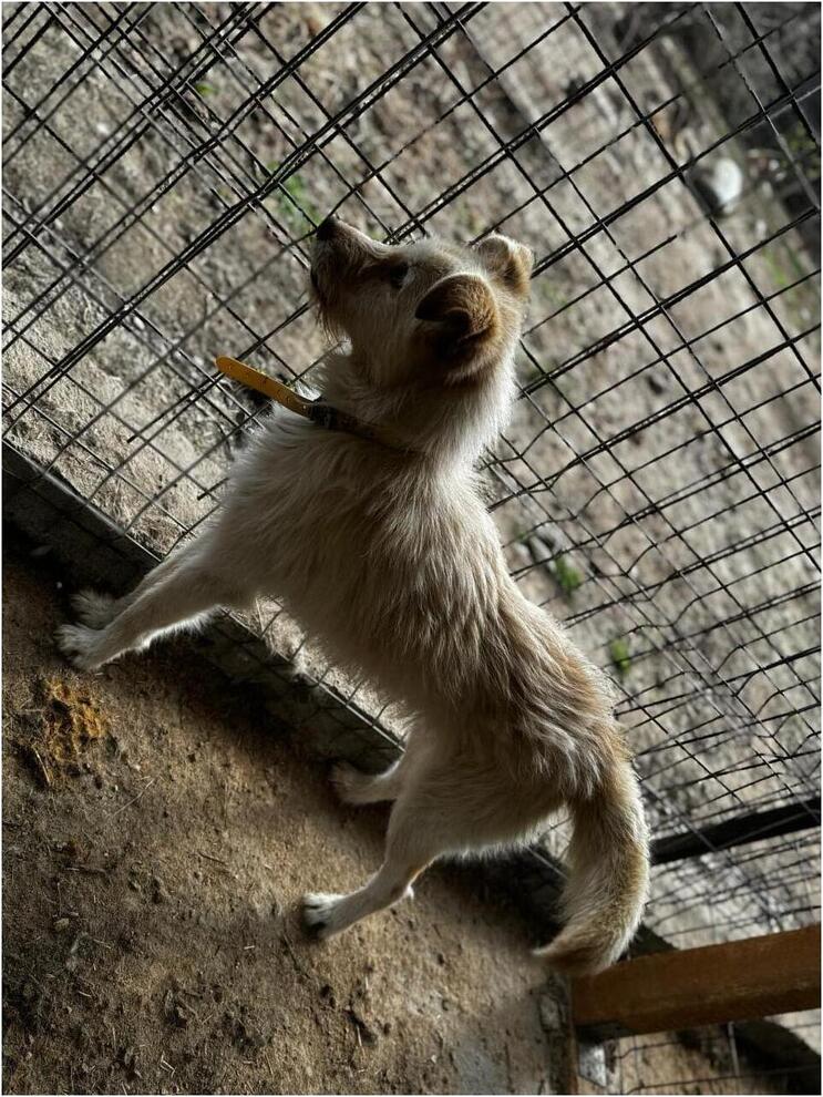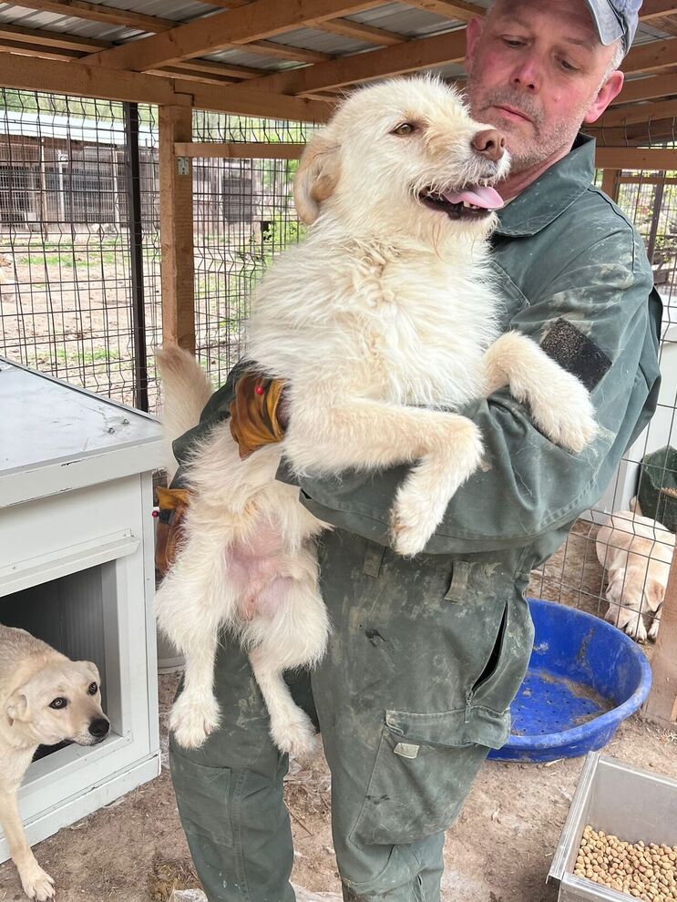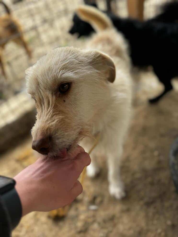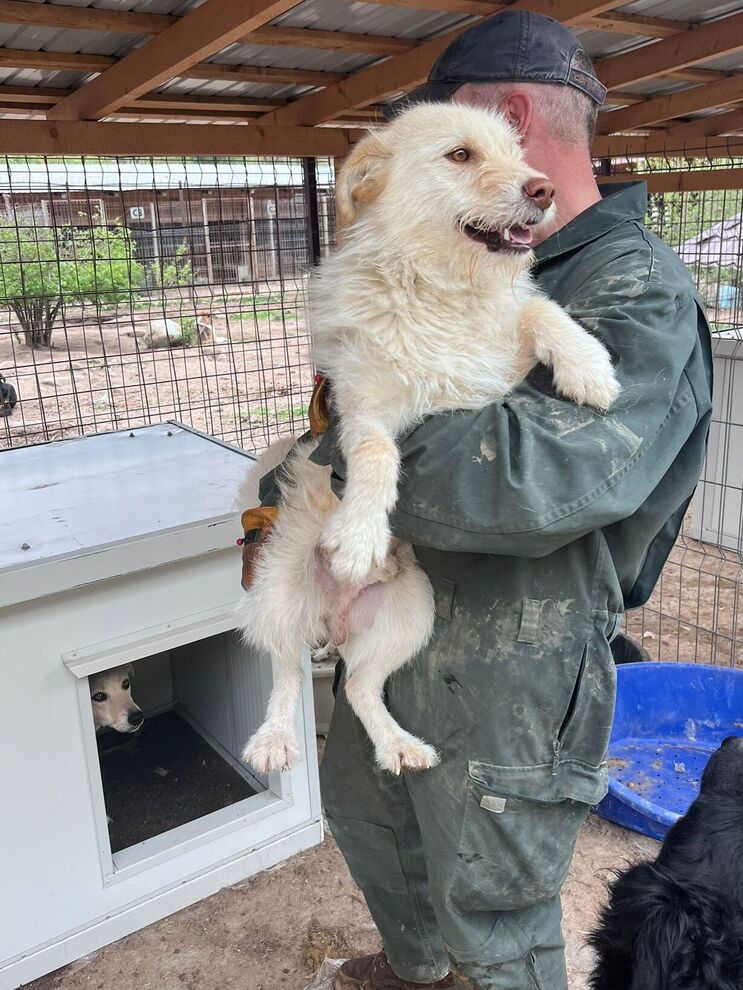 Der liebe Rüde hat sich total über den Besuch der Volontäre gefreut, auch der Arbeiter wurde freundlichst begrüßt. Leider kann er nicht ganz aus sich raus, da er im Kennel von einem anderen Rüden beschränkt wird. Man kann aber davon ausgehen, dass er in seinem eigenen Zuhause schnell auftaut und ein toller Begleiter wird.