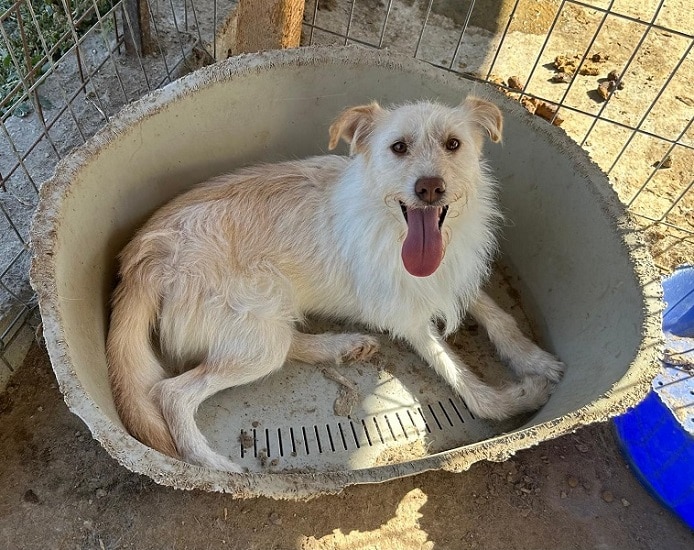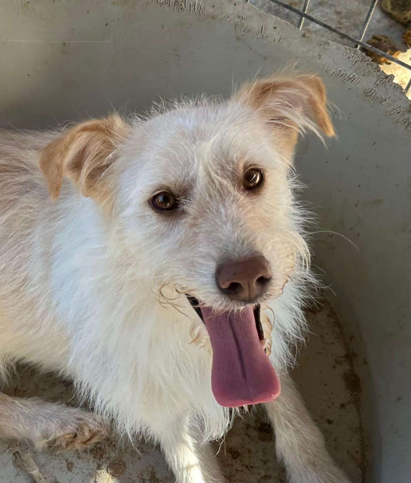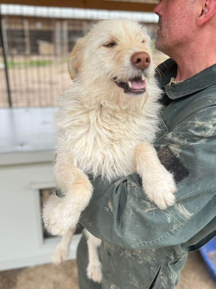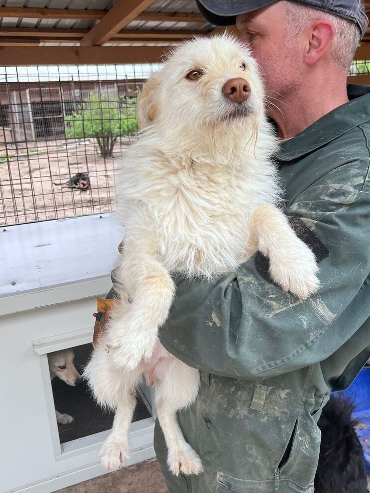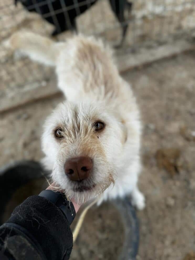 Der liebe Rüde hat sich total über den Besuch der Volontäre gefreut, auch der Arbeiter wurde freundlichst begrüßt. Leider kann er nicht ganz aus sich raus, da er im Kennel von einem anderen Rüden beschränkt wird. Man kann aber davon ausgehen, dass er in seinem eigenen Zuhause schnell auftaut und ein toller Begleiter wird.