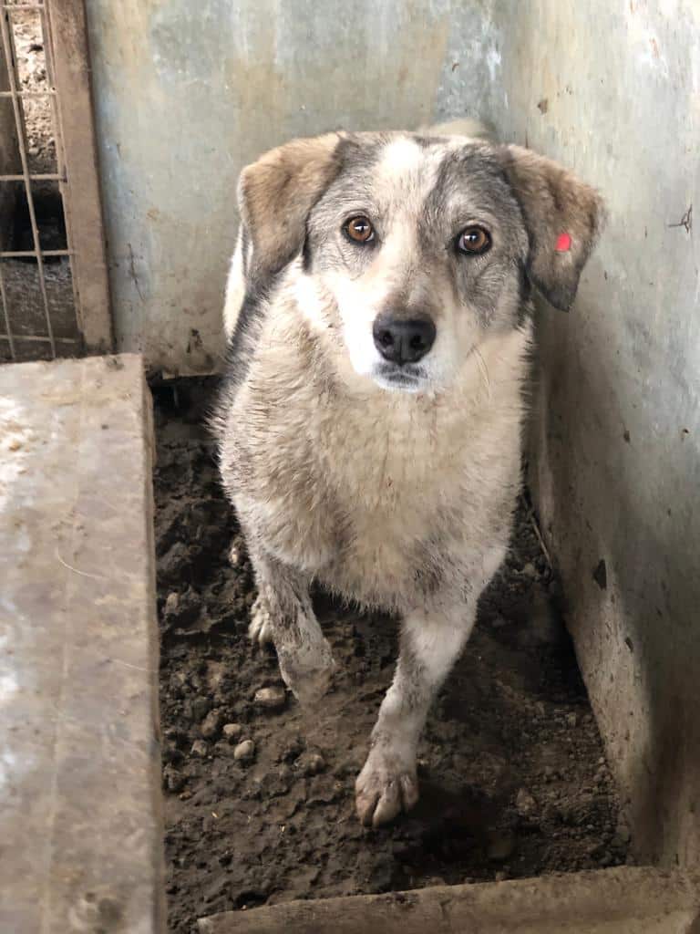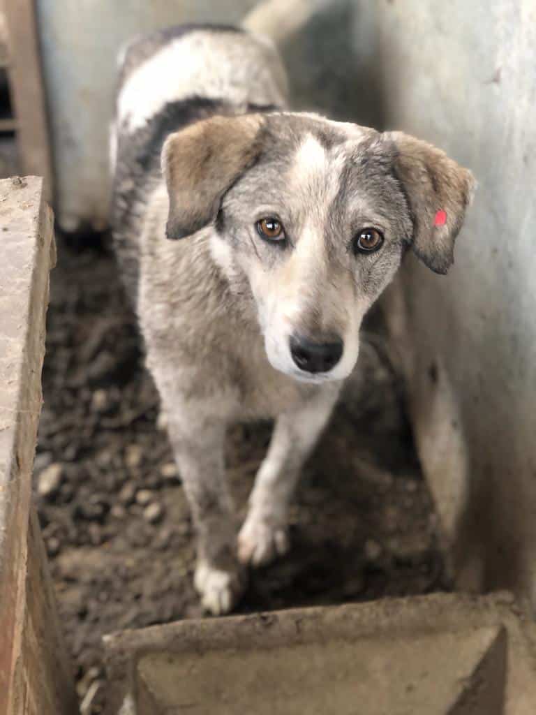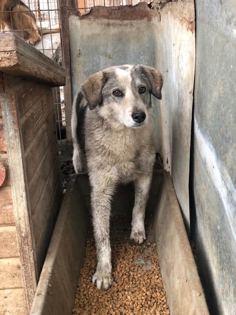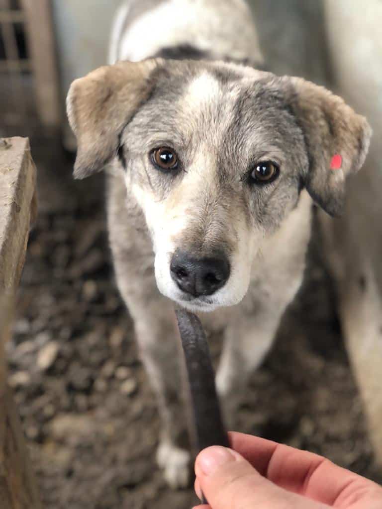 RALLYE zeigte sich neugierig und hätte fast Leckerchen aus der Hand genommen. Im letzten Moment verließ ihn der Mut. Er sitzt nun schon so viele Jahre in Bucov und würde sehr erfahrende Menschen benötigen.