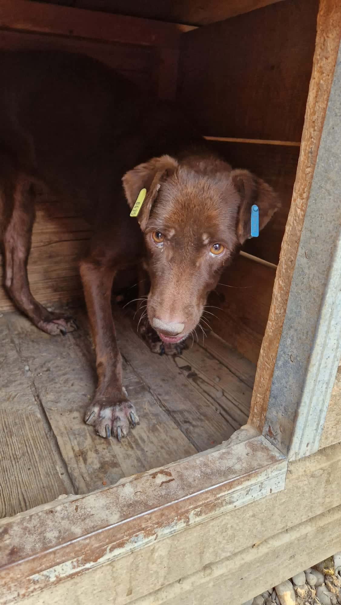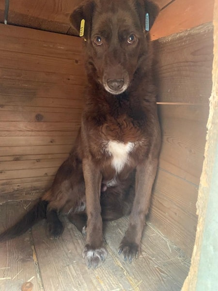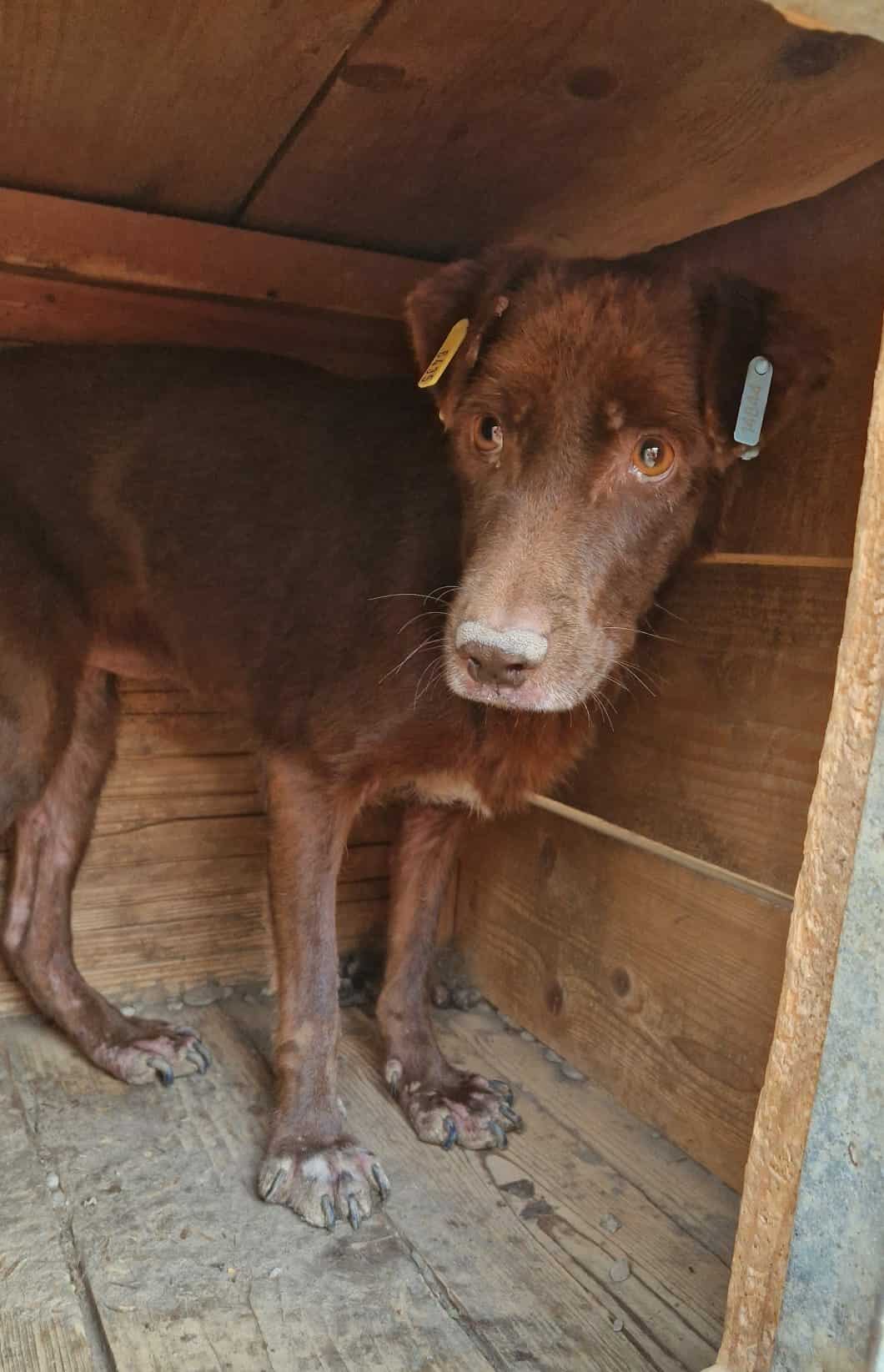 RAMA ist weiterhin schüchtern, aber nicht mehr ganz so schlimm besorgt. In ihrer Hütte nimmt sie Leckerchen aus der Hand und lässt vorsichtige Berührungen zu. Geheuer ist es ihr allerdings noch nicht. Ihre Pfoten wirken nicht mehr ganz so geschwollen, sehen aber weiterhin auffällig aus.