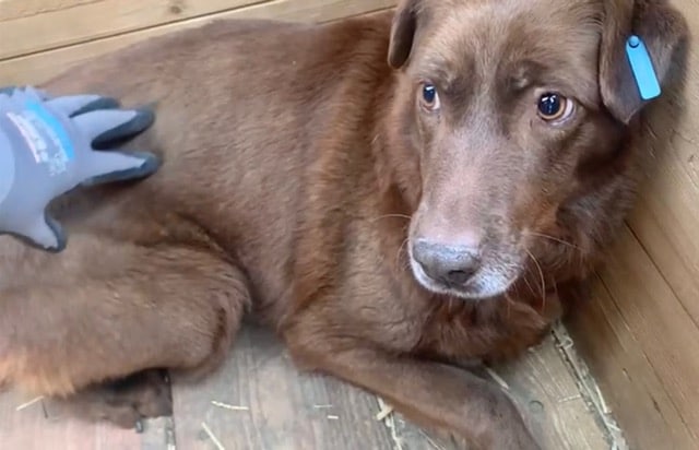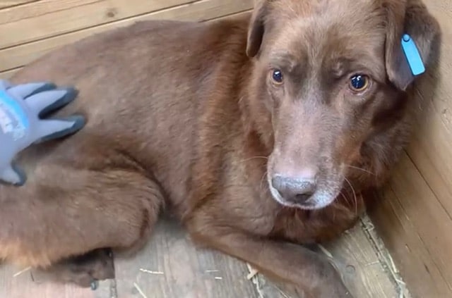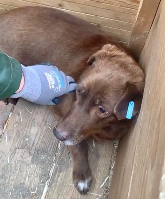 nahm mit etwas Zeit zaghaft Futter aus der Hand, ließ sich dabei zaghaft an der Schnauze anfassen