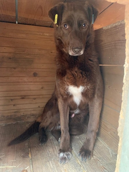 Die süße Rama war in ihrer Hütte unter Bedrängung vorsichtig überall anfassbar. Man merkt ihr ihre Skepsis gegenüber uns Menschen an, unsere Annäherungsversuche ließ sie trotzdem über sich ergehen. Rama bräuchte im potentiellen Zuhause Zeit zur Eingewöhnung, in der sie langsam Vertrauen in den Menschen entwickeln kann. In ihrem Kennel zeigte sie sich mit allen anderen Hunden verträglich.