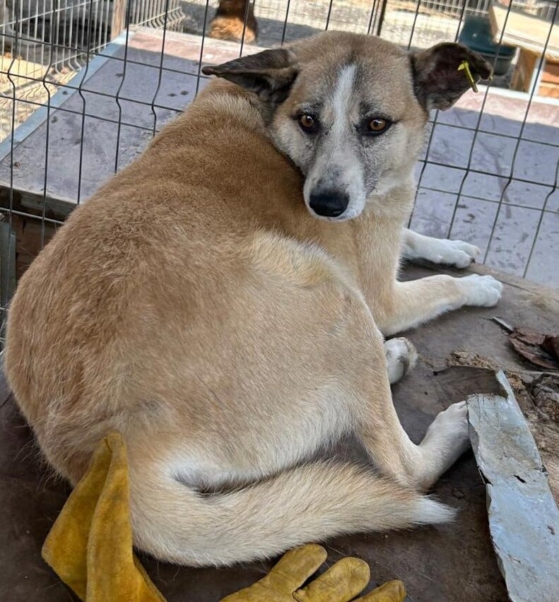 Mit seinen Artgenossen vor Ort ist der hübsche Rüde verträglich. Er wäre daher gut auch zu anderen Hunden vermittelbar.