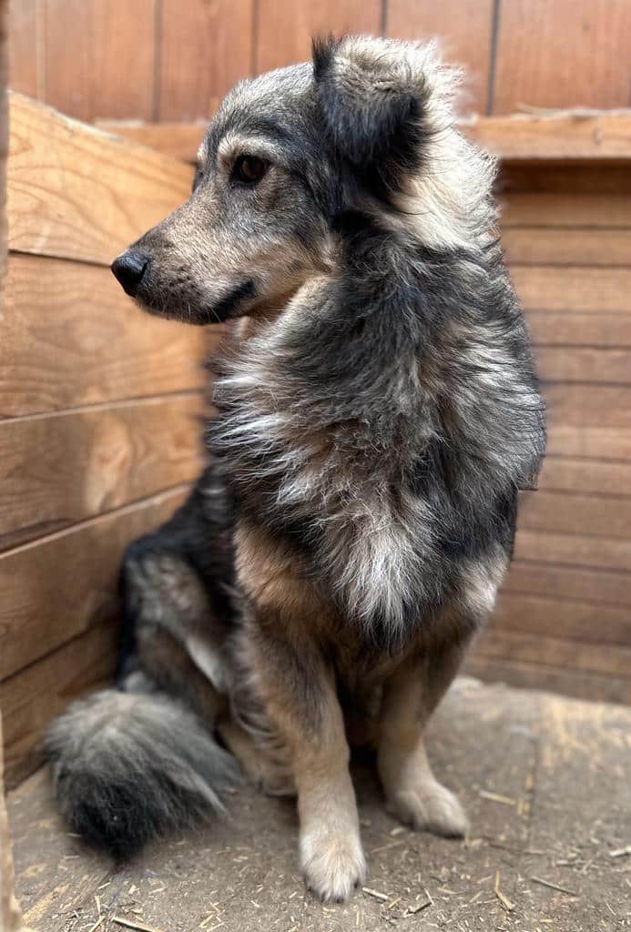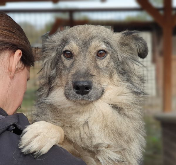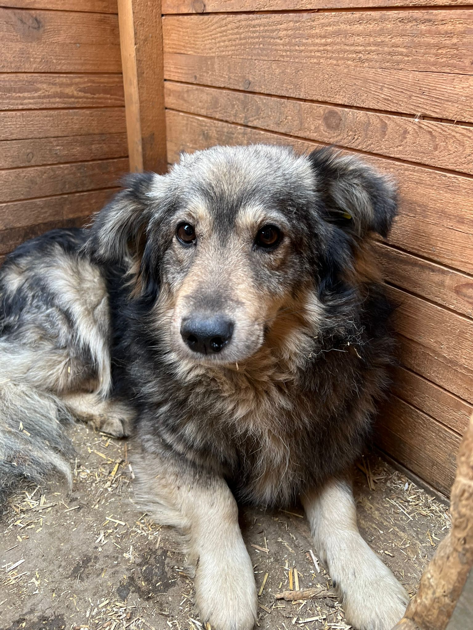 Der wunderschöne RASTI ist in Bucov total überfordert. Er lag nur in der Hütte als wir kamen und beobachtete uns von dort. RASTI ließ sich ohne Probleme aus der Hütte heben und auf den Arm nehmen. Er blieb immer passiv und entspannte zusehends unter den Streicheleinheiten. Mit etwas Zeit und Ruhe wird RASTI sicher ein toller Begleiter.