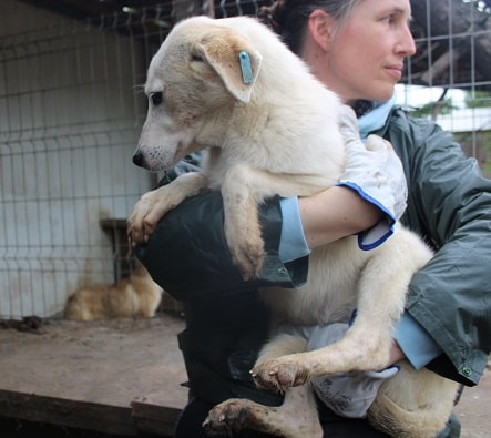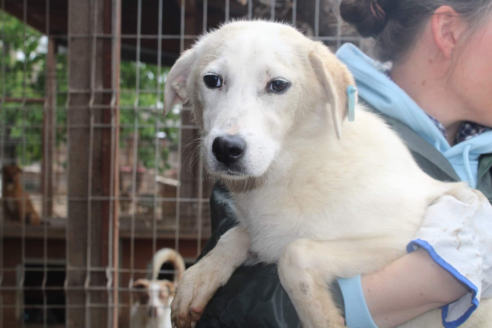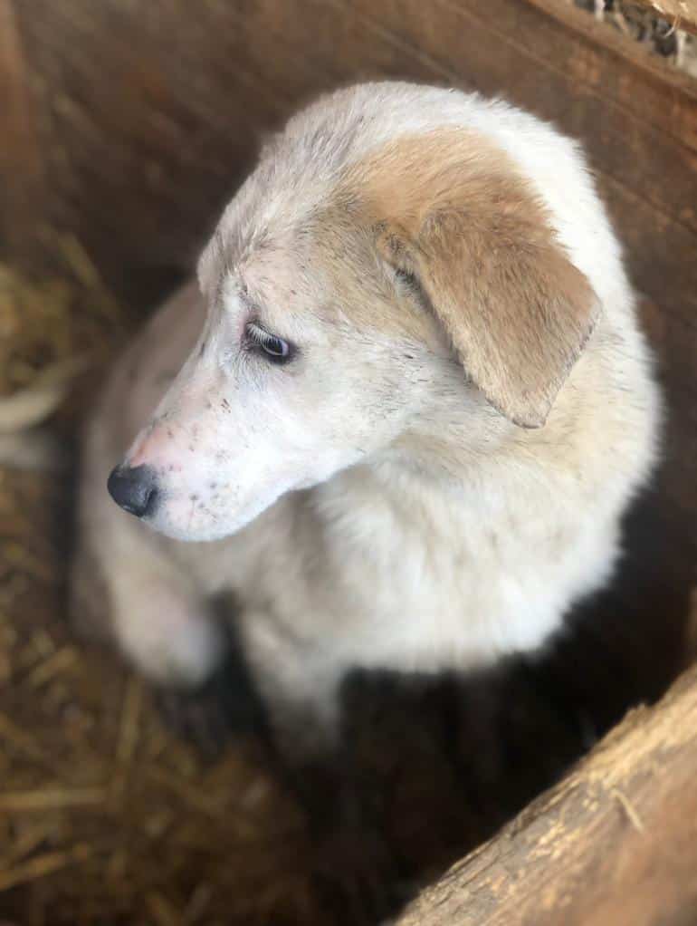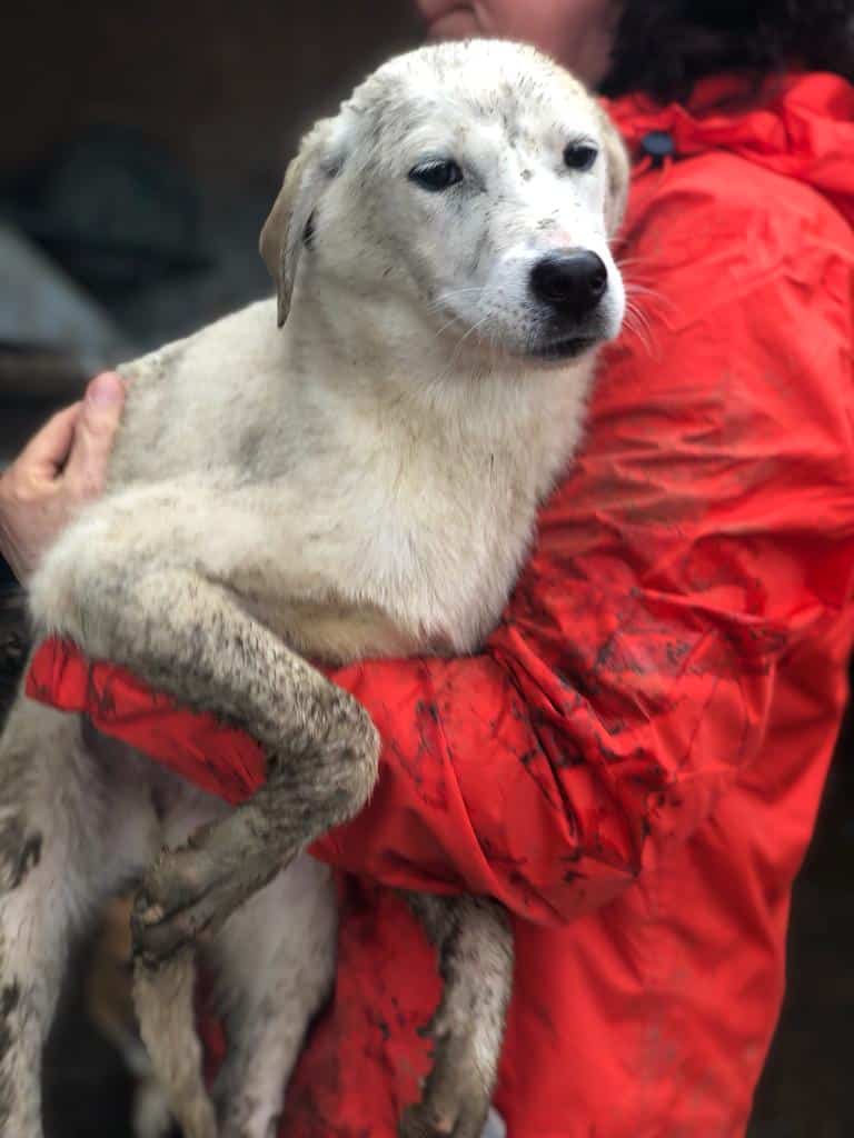 RAVELLA ist eine wunderhübsche Lady geworden. Sie ließ sich gut auf den Arm nehmen und auch später ganz zärtlich in der Hütte überall streicheln. Sie lebt mit 18 Hunden in einem Kennel und zeigt sich sehr verträglich. Hoffentlich findet diese tolle Hündin bald eine Familie.