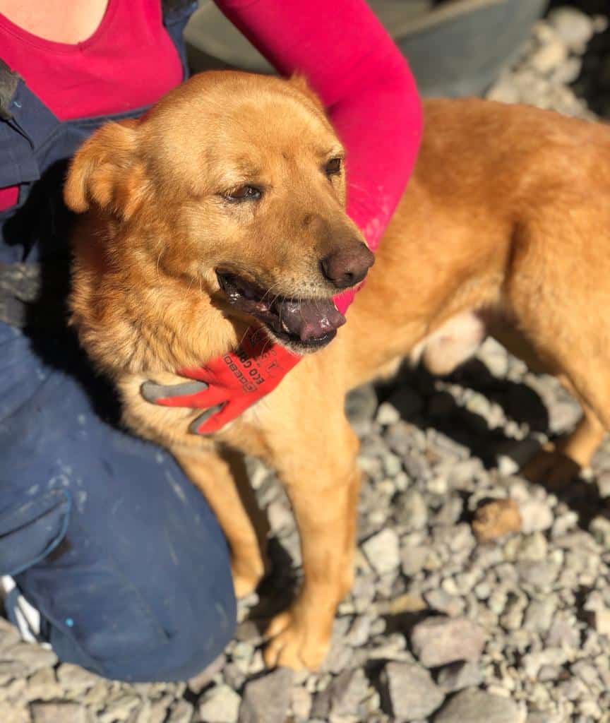 Richtig netter Hundemann, der aktuell provisorisch mit zwei Welpen einen Kennel im Bau bewohnt. Er wurde während des Kastraevents Ende September 2023 von der Animal Police eingefangen, ins Shelter gebracht und da gelassen.