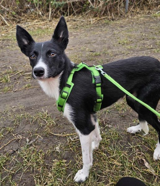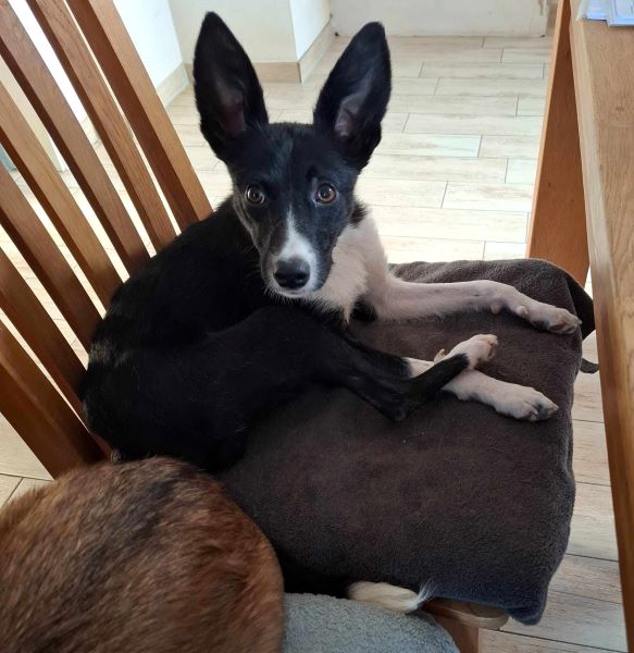 Klein Raydah hat viel Energie und einen großen Spieltrieb. Sie kann aber trotzdem sehr gut alleine bleiben, fährt 1A im Auto mit und ist auch unheimlich kuschelig. Sie ist ca.40cm hoch und wiegt ca. 7kg. Raydah versteht sich sehr gut mit großen Hunden und spielt unbefangen mit ihnen. Bei kleineren, unterwürfigen Hunden neigt Raydah dazu, den Ton angeben zu wollen; bekommt sie Gegenwind, entspannt sich die Lage dann aber wieder. Auch mit souveränen Katzen könnte sich die schwarz, weiße Hündin anfreunden. Uns Menschen findet Raydah ganz toll, auch Kindern ist sie zugetan. Sie liebt Aufmerksamkeit und es angesprochen zu werden. Es ist eine Wonne in ihr strahlendes Gesicht zu schauen, denn mit ihren überdimensionalen Ohren ist sie einfach einmalig. Neben Spiel und Spaß kann Raydah aber auch artig und schlau ist unser Mäuschen. Sie wäre ein toller Wegbegleiter im Büro und auch auf allen anderen Wegen. Sie ist unerschrocken, selbstbewusst und sehr liebevoll. Unsere Zuckerpuppe ist nicht kastriert und auf dem besten Weg stubenrein zu werden, es passieren nur noch selten kleine Missgeschicke, aber auch das wird sie noch hinbekommen. Raydah hat hier gezeigt was für eine Kämpferin sie ist und hat sich nicht nur körperlich sondern auch geistig unheimlich entwickelt. Sie braucht jetzt unbedingt eine Familie, die sie auf ihre weitere Reise ins Leben mitnimmt, ihr noch soviel mehr von der Welt zeigt und ihr die Zeit gibt noch fitter und erwachsener zu werden.