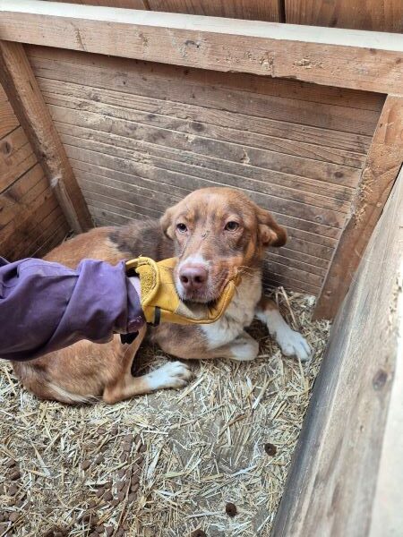 Wir hatten das Gefühl, dass Reddish sehr beeindruckt von einigen ihrer Kennelmitbewohner ist. Sie nahm Leckerlies gut aus der Hand und ließ sich außerhalb der Hütte streicheln und nach einiger Zeit fielen ihr auch ihre Äuglein zu. Reddish ist sehr überfordert im Shelter und sollte schnell eine Möglichkeit zur Ausreise haben. In einer ruhigen und sicheren Umgebung wird sie Vertrauen fassen können.
