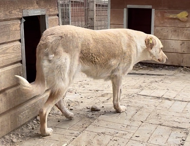 Die süße REGINA kam vor mehr als einem Jahr mit ihren Hundekindern in das riesige Shelter. Die gesamte Hundefamilie durfte in einen Außenkennel umziehen und scheint bisher keinen Kontakt zu Menschen gehabt zu haben. Entsprechend skeptisch zeigte sich REGINA auch bei diesem Besuch. Als wir den Kennel betraten, hielt sie sich in ihrer sicheren Hütte auf. Die hineingeworfenen Leckerlie wollte sie nicht fressen und als wir ihr zu aufdringlich wurden, wechselte sie kurzerhand die Hütte. REGINA war dabei nicht panisch, sondern schlenderte durch den Kennel, denn sie hatte einfach keine Lust auf uns. Wie beließen es dabei und bedrängten sie nicht weiter. Für REGINA suchen wir einen sehr erfahrenen Platz bei einfühlsamen Menschen, die sie an die Pfote nehmen und Stück für Stück an ein Zusammenleben auf der Sonnenseite heranführen, damit sie endlich Geborgenheit erfahren darf. Ein netter Ersthund wäre dabei sicher eine Stütze. Wir wünschen der sensiblen REGINA, dass dieser trostlose Ort nicht ihre Endstation sein muss.