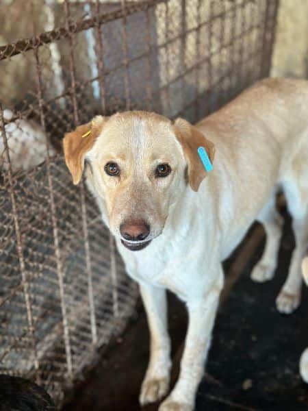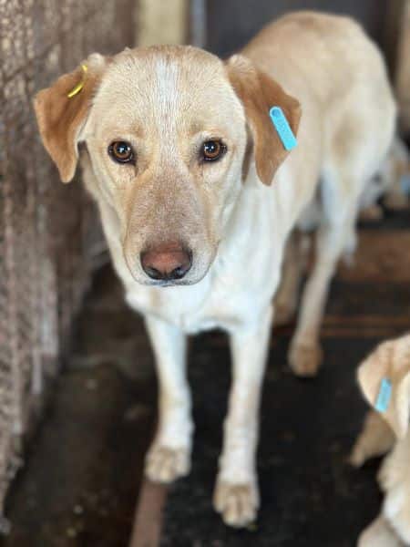 Diese Hündin schaute uns neugierig an, aber als wir näher kamen und sie anfassen wollten, reagierte sie mit Abschnappverhalten. Ein Anfassen war leider nicht möglich und im VetKennel alles viel zu eng, um sie zwischen den anderen Hunden weiter zu bedrängen. Sie bräuchte ein sehr erfahrenes Zuhause. Vielleicht hatte sie bisher wenig Menschenkontakt. Sie hatte früher einmal Welpen gehabt.