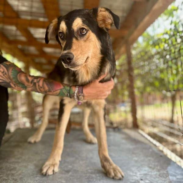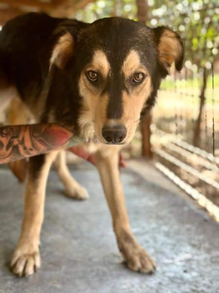 Der wunderschöne REMO teilt sich einen schmalen Kennel mit einer Mama und deren 6 Welpen, mit denen er sich toll versteht. Er ist neugierig, aber leider auch schon recht schüchtern. Leckerchen nimmt er aus der Hand und auch vorsichtiges Streicheln ist möglich, er kennt es aber einfach gar nicht und kann es daher nicht genießen.