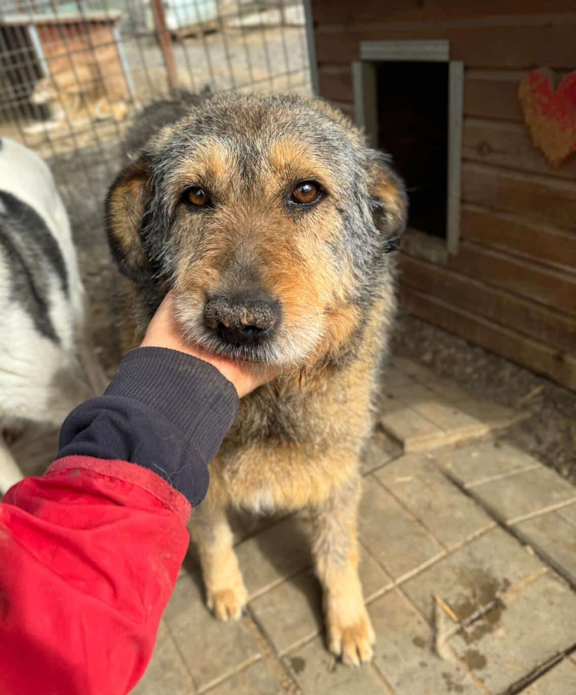 RENATA schützte sich im Schatten vor der brennenden Sonne in einer Ecke ihres Kennels und nahm anfangs kleinen Kontakt zu uns auf.