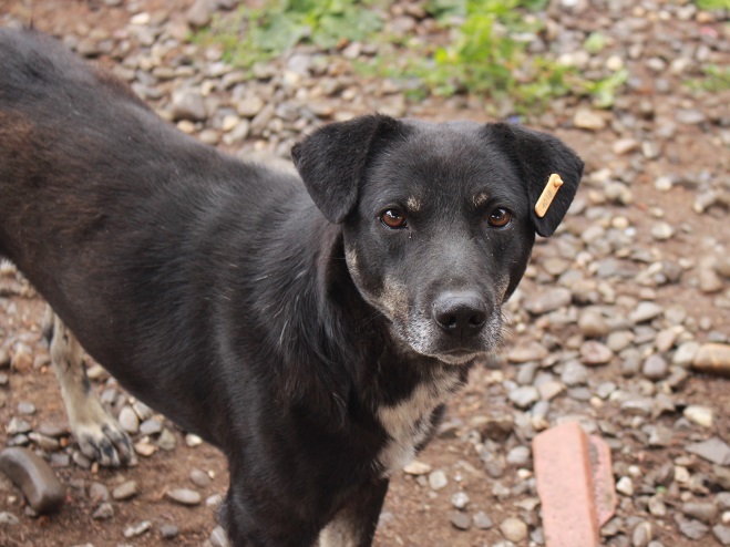 RENEO ist grau ums Näschen geworden und macht einen traurigen Eindruck. Gerne hätte er die angebotenen Leckerchen aus der Hand genommen, man merkt wie sehr er mit sich ringt. Vom Boden traute RENEO sich dann doch das angebotene Frolik zu stibitzen. Zum Streicheln fehlte ihm der Mut.