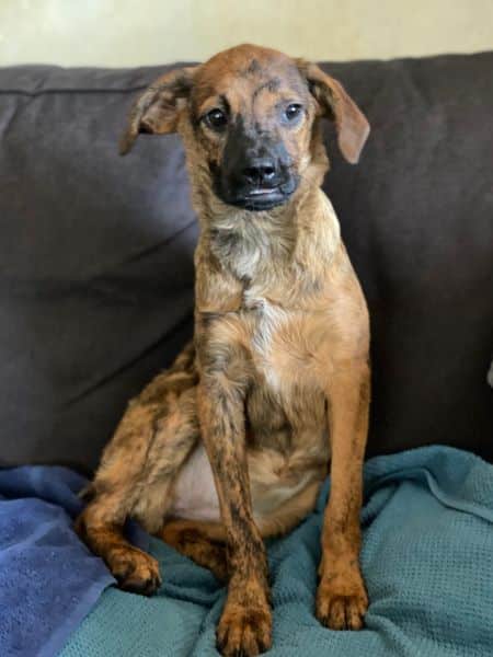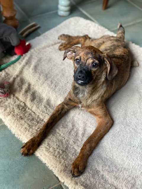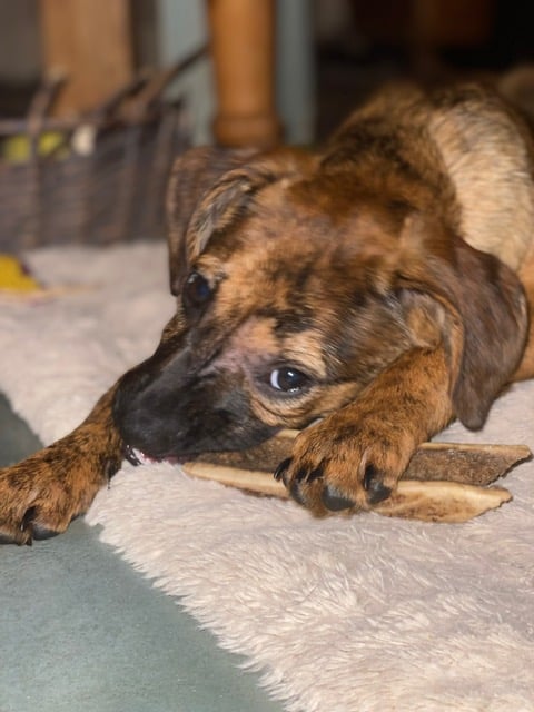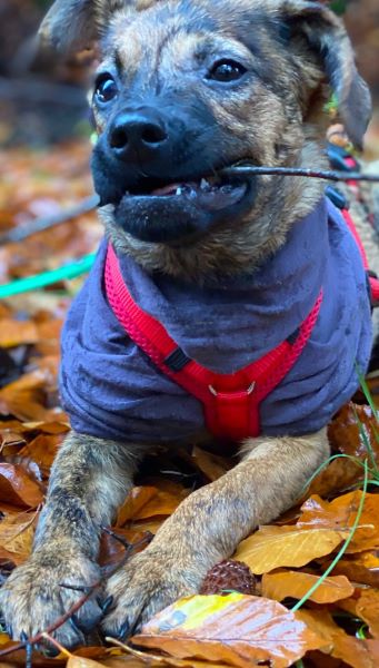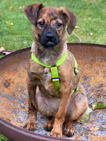 Rhaya ist eine kleine zarte und wunderschön gestromte Hündin mit charmantem Unterbiss. Aktuell ist sie natürlich noch im Zahnwechsel. Sie ist eine alterstypisch verspielte, vorsichtige und sehr geduldige, ausgeglichene Welpin.