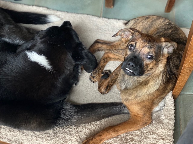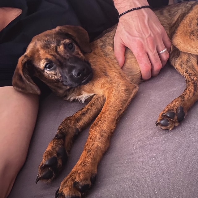 Ein liebevoller freundlicher Ersthund wäre für Rhaya das Allergrößte, denn sie liebt das Kuscheln mit einem welpen- bzw. hundeerfahrenen Hund und orientiert sich stark an diesem.