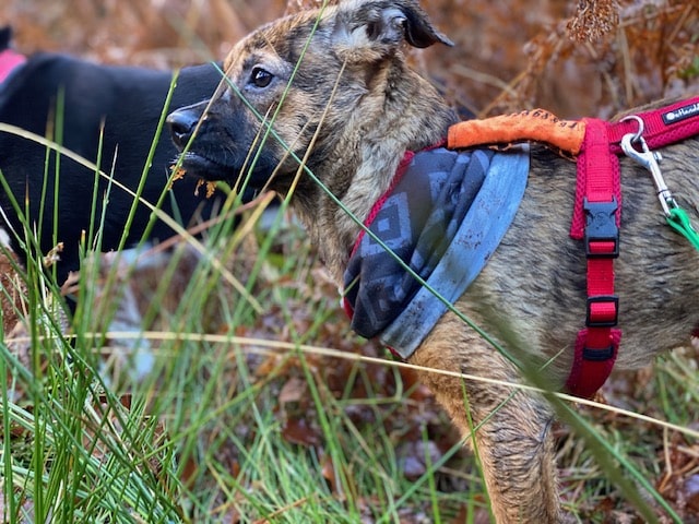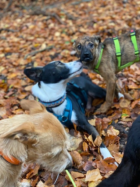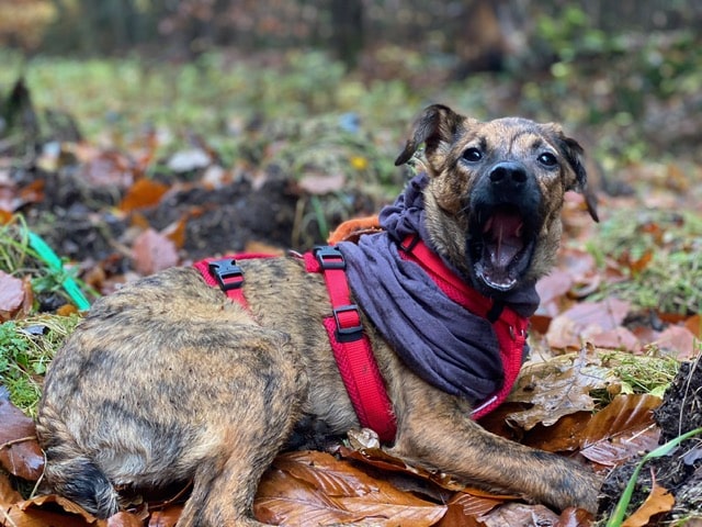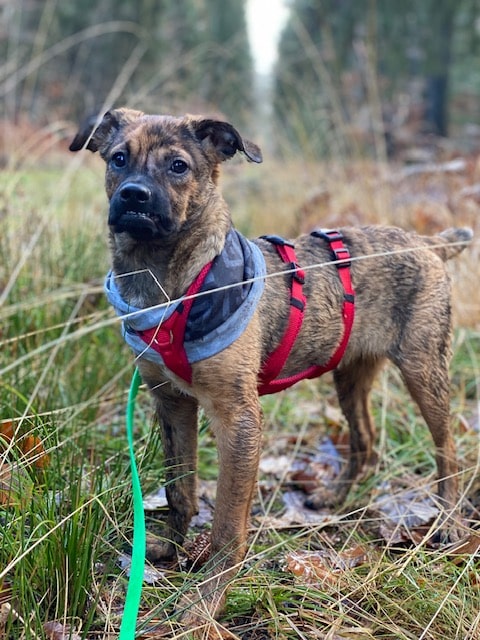 Rhaya ist freundlich zu allem und jedem und ebenso interessiert an ihrer Umwelt. Unterwegs läuft sie schon toll an der Schleppleine mit und tollt herum. Manche Begegnungen ringen ihr ein Wuffen ab, da braucht sie dann Menschen die ihr Sicherheit geben.